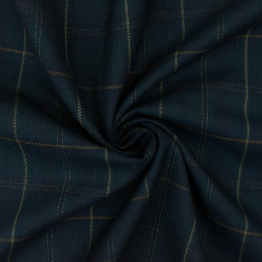 Deep Green-Orange-Multi Plaid Wool Polyester Woven Suiting Fabric