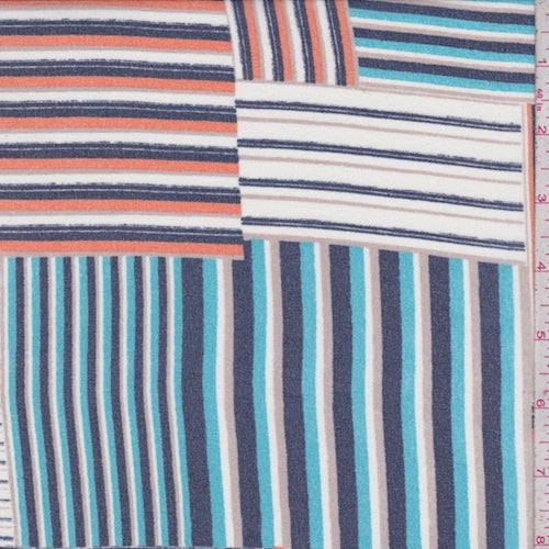 Aqua/Clay/Grey Stripe Patchwork Pebble Chiffon Fabric
