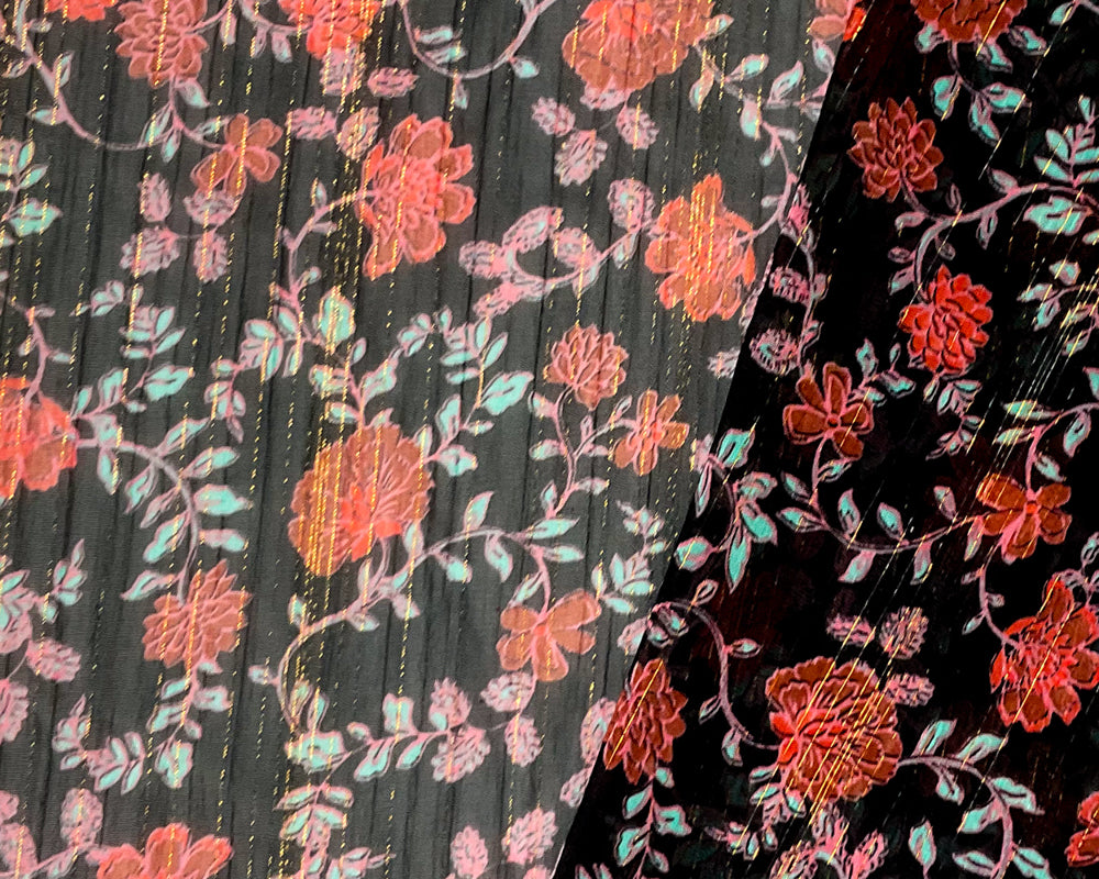 Black-Multi Poly Floral Metallic Print Yoryu Chiffon Woven Fabric