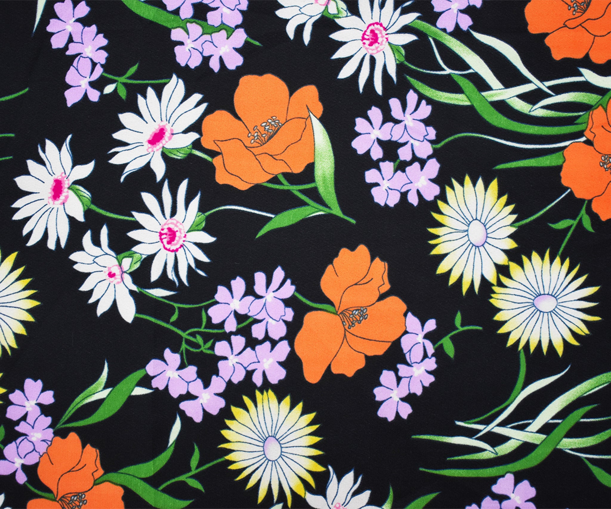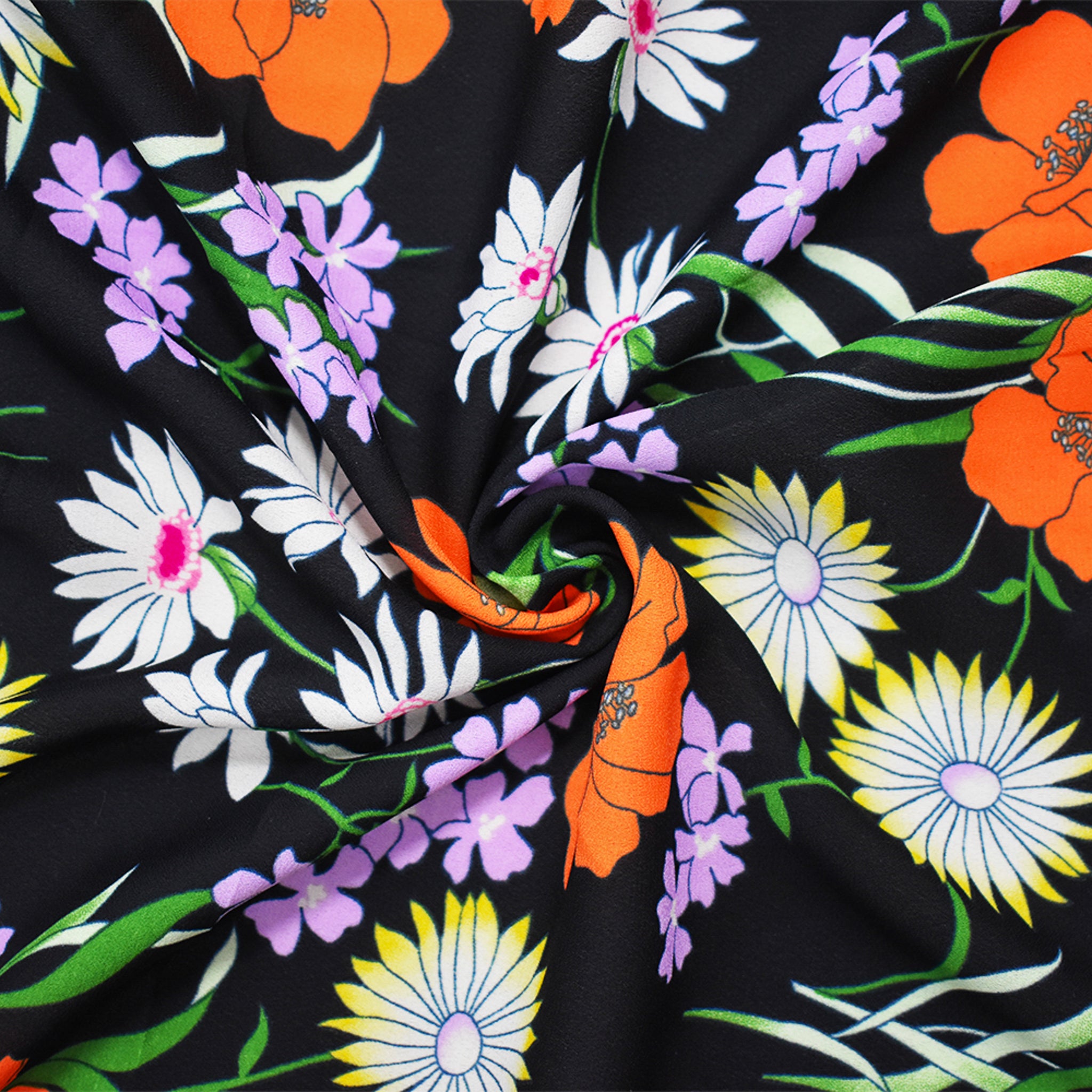 Black-Orange-Multi Poly Floral Printed Chiffon Woven Fabric