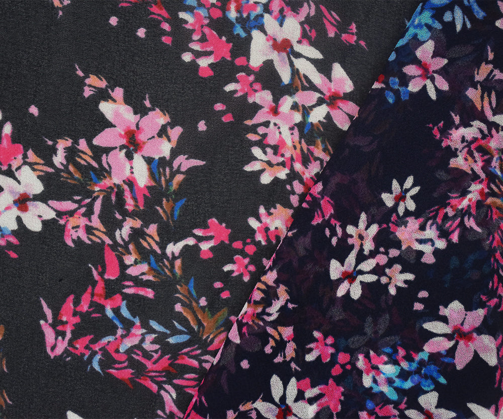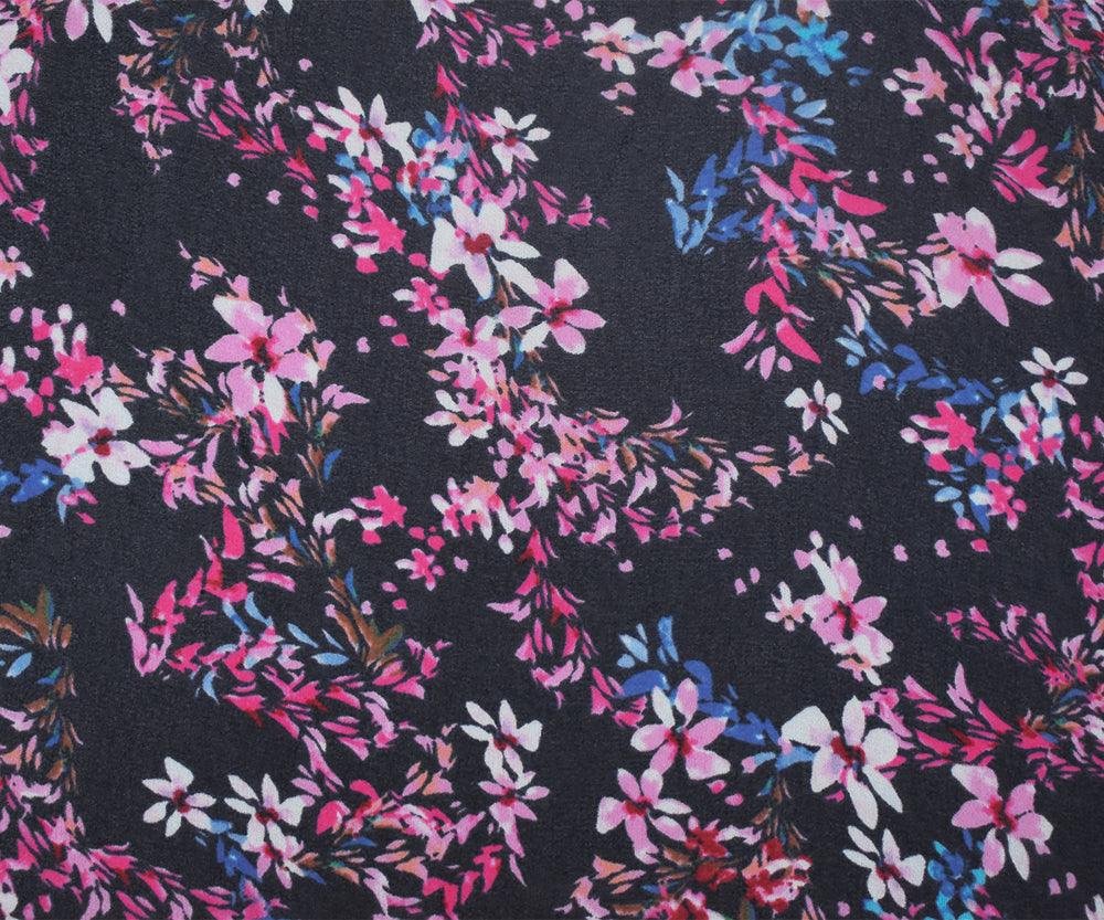 Black-Pink-Multi Floral Printed Poly Chiffon Woven Fabric