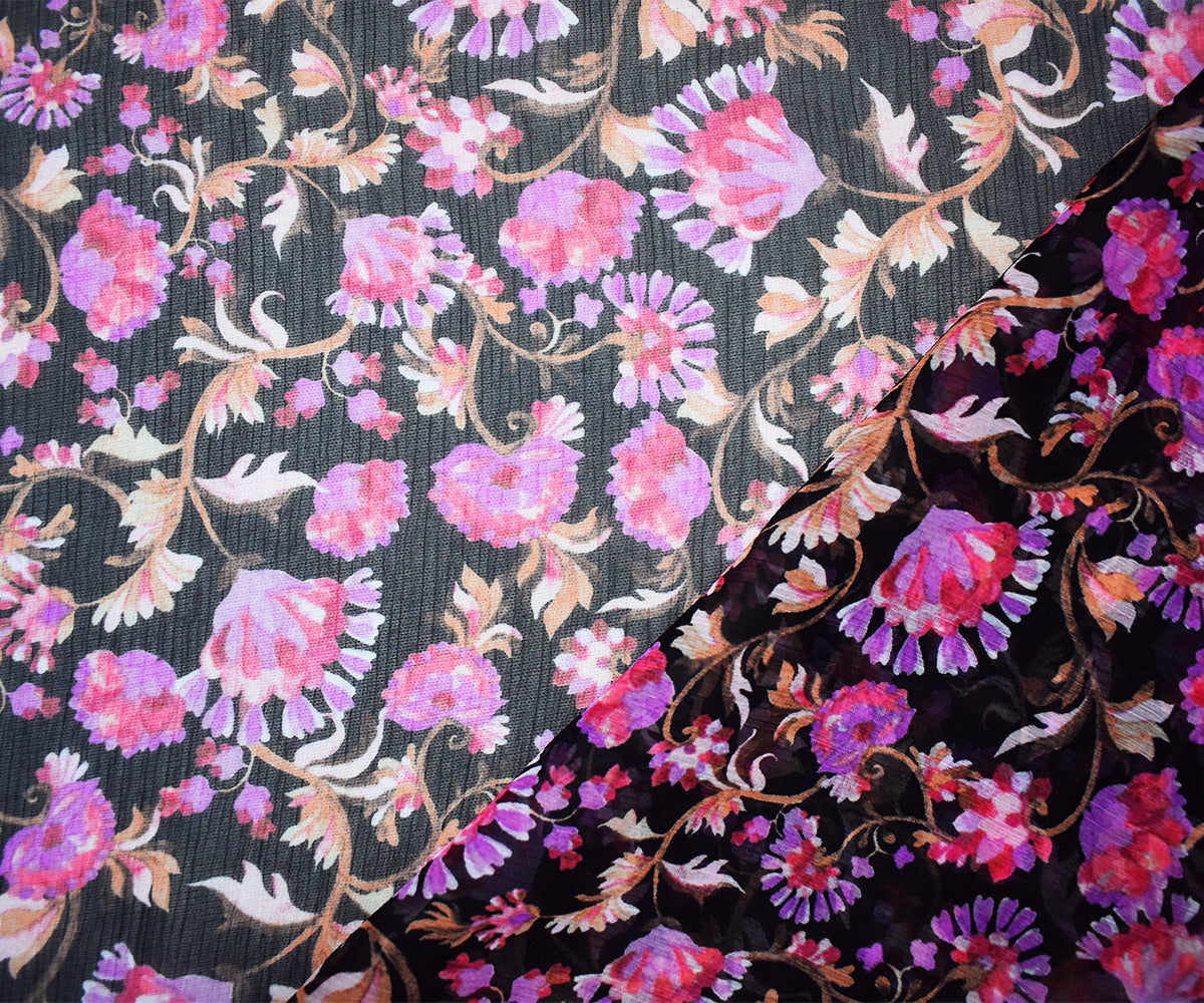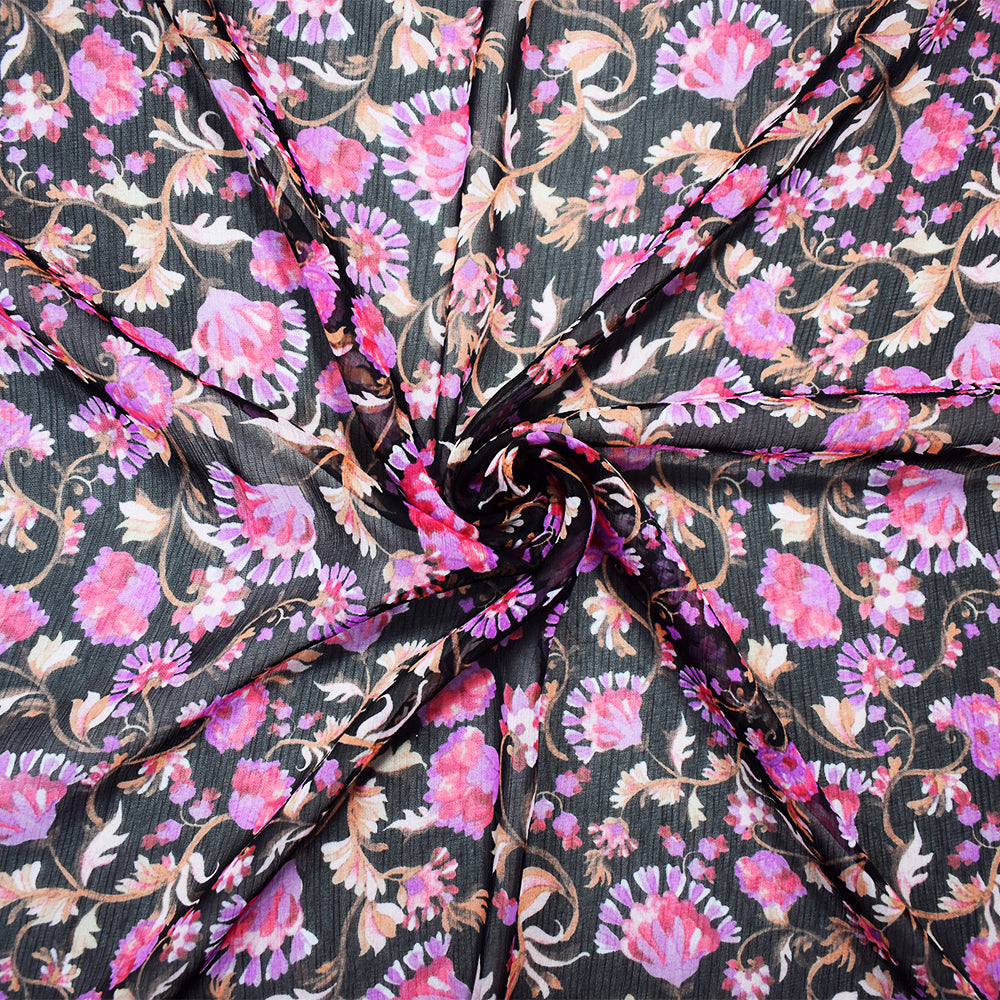 -Black-Pink-Multi Poly Floral Printed Crinkle Yoryu Chiffon Woven Fabric