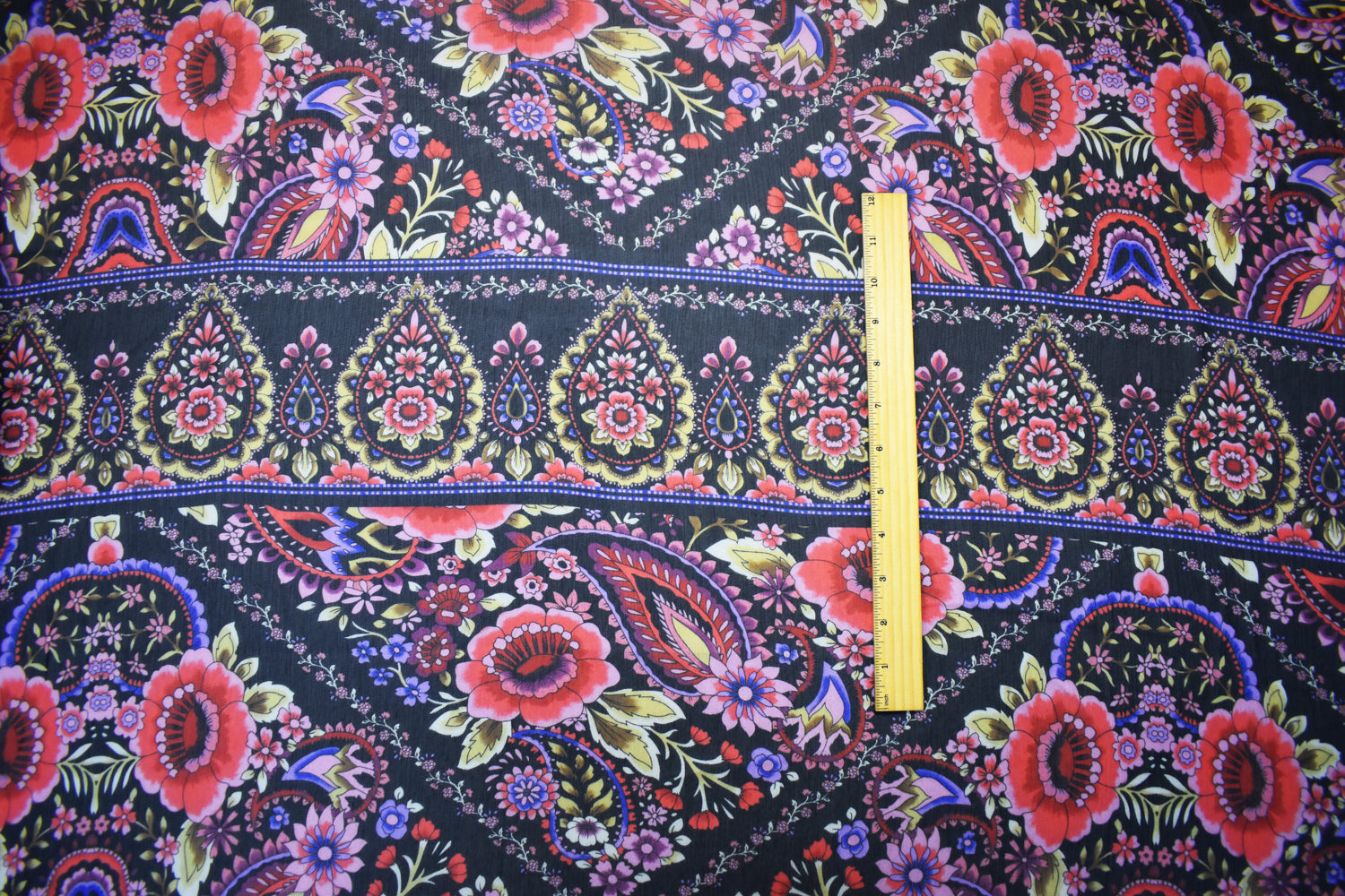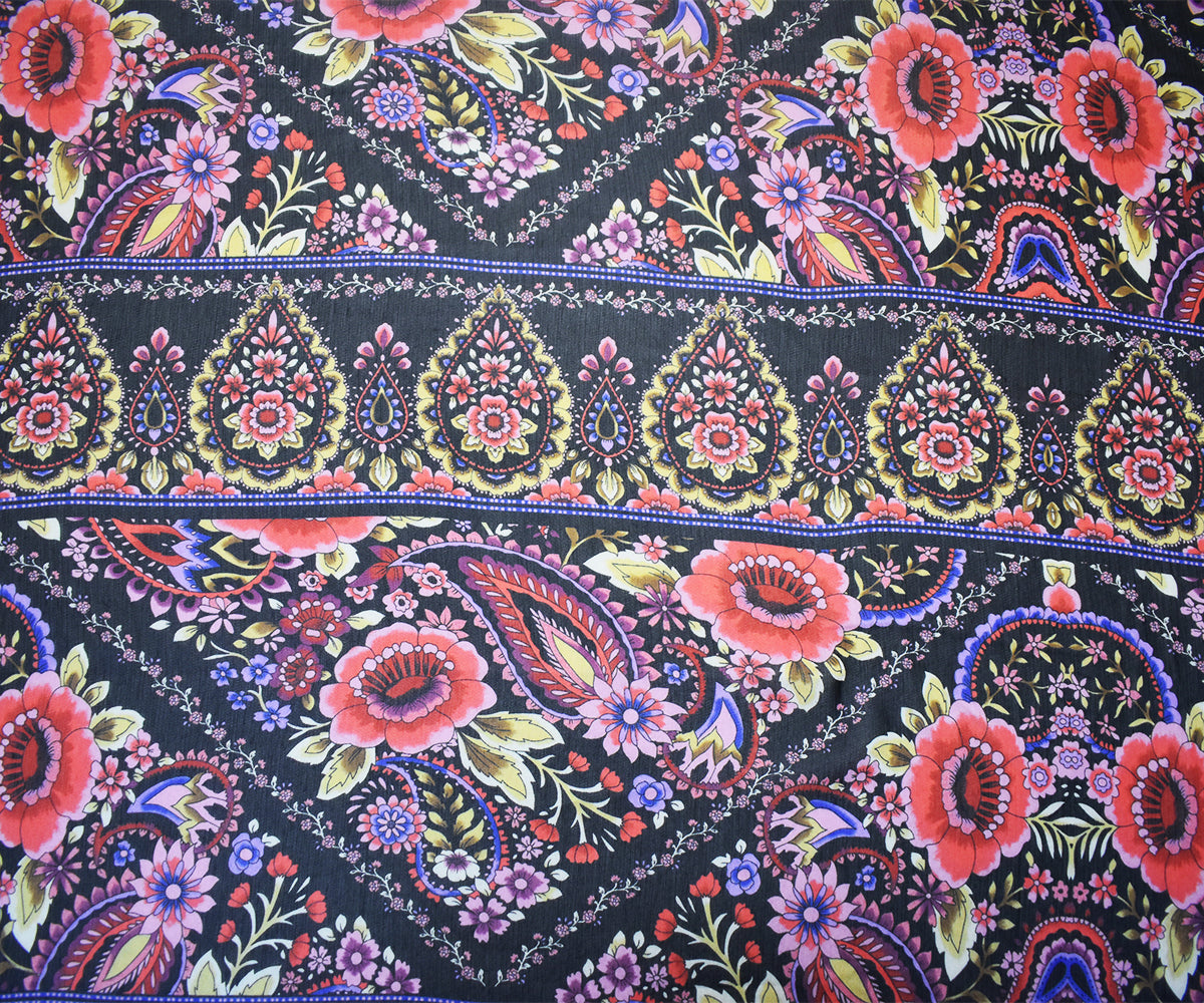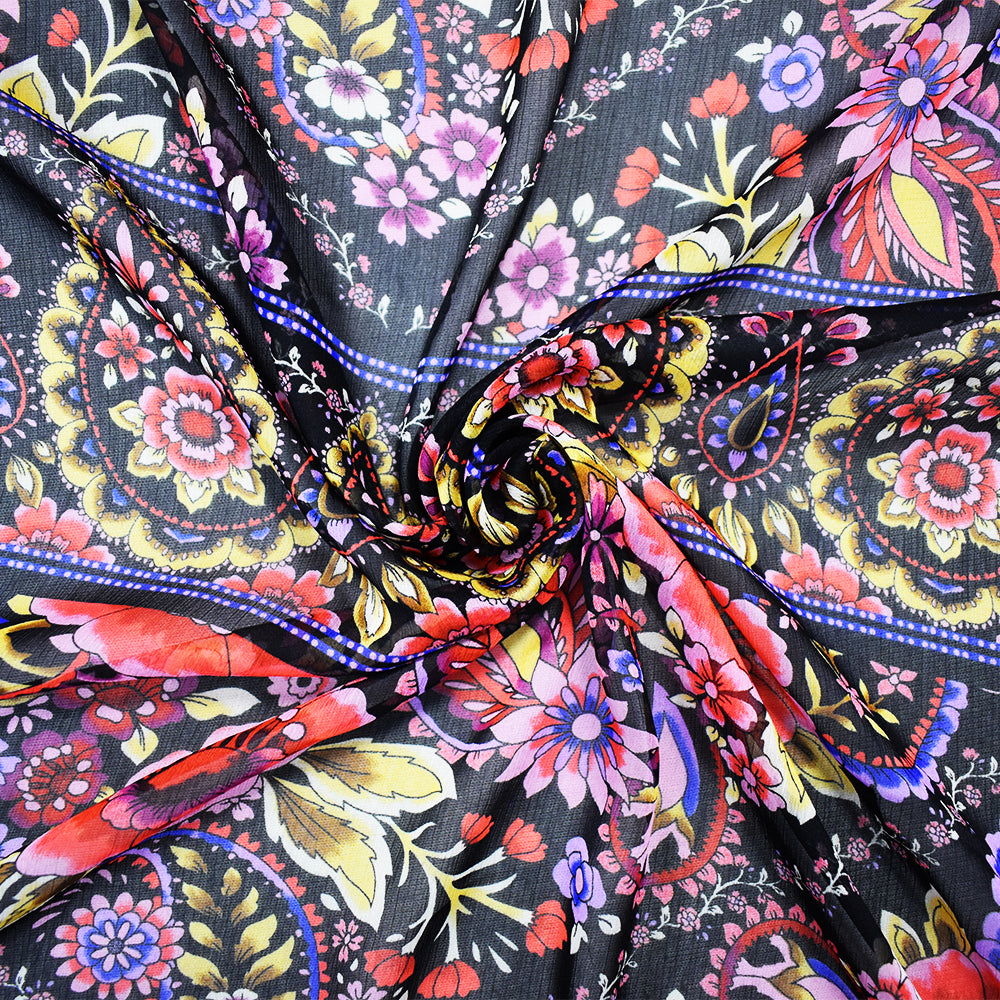 Black-Pink-Multi Poly Floral Printed Crinkle Yoryu Chiffon Woven Fabric