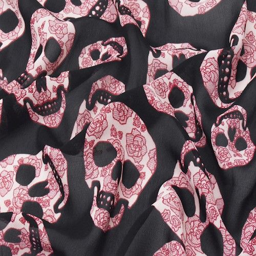 Black/Red/Multi Floral Skull Printed Chiffon Woven Fabric