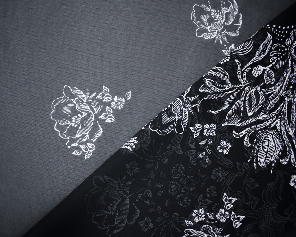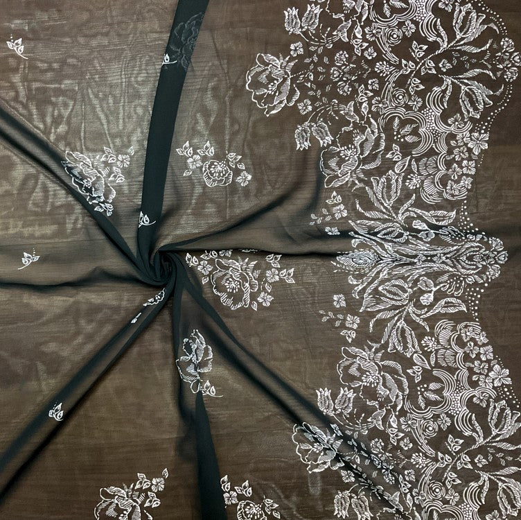 Black-White Poly Floral Border Printed Chiffon Woven Fabric