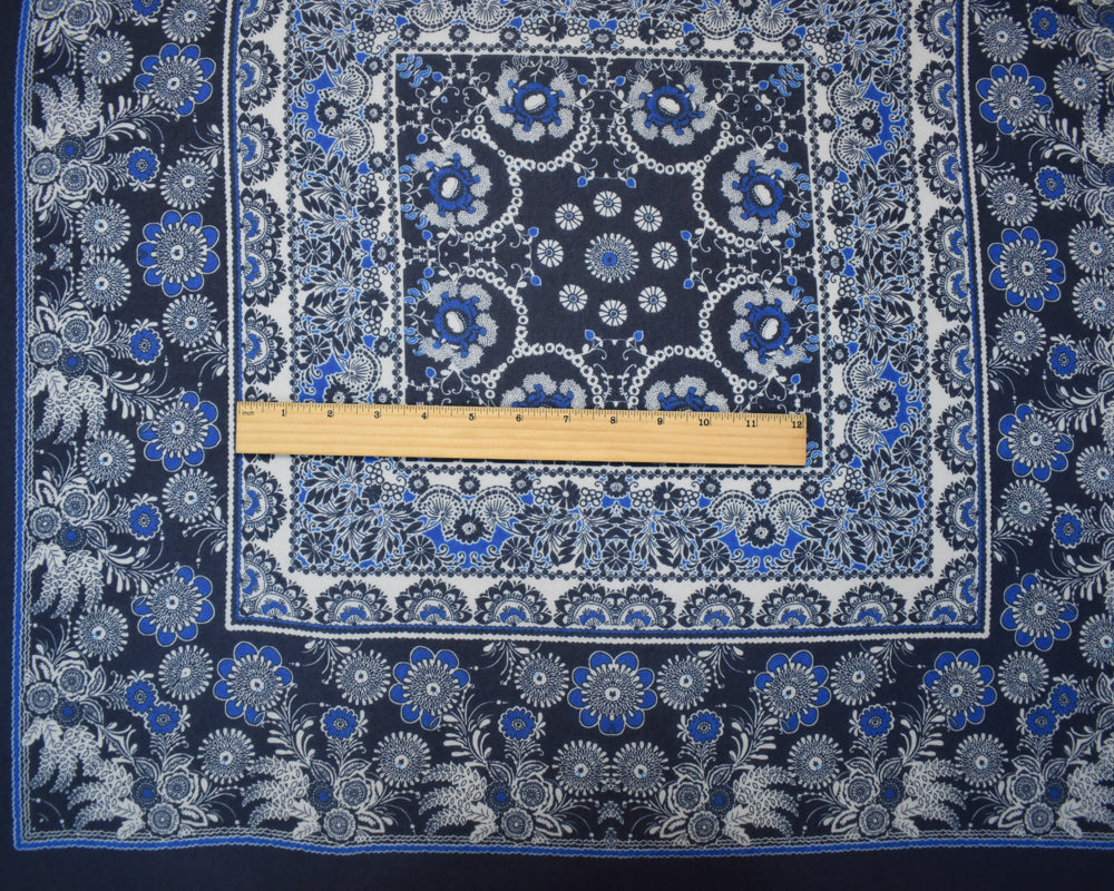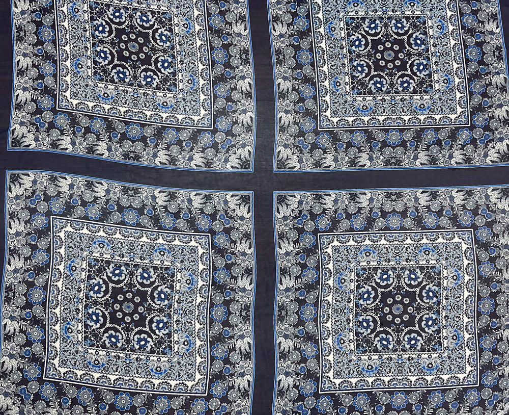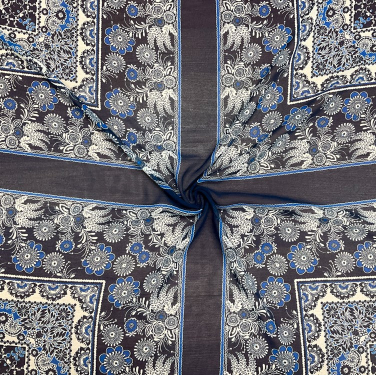 Blue-White Floral Moroccan Bandana PANEL Printed Chiffon Woven Fabric