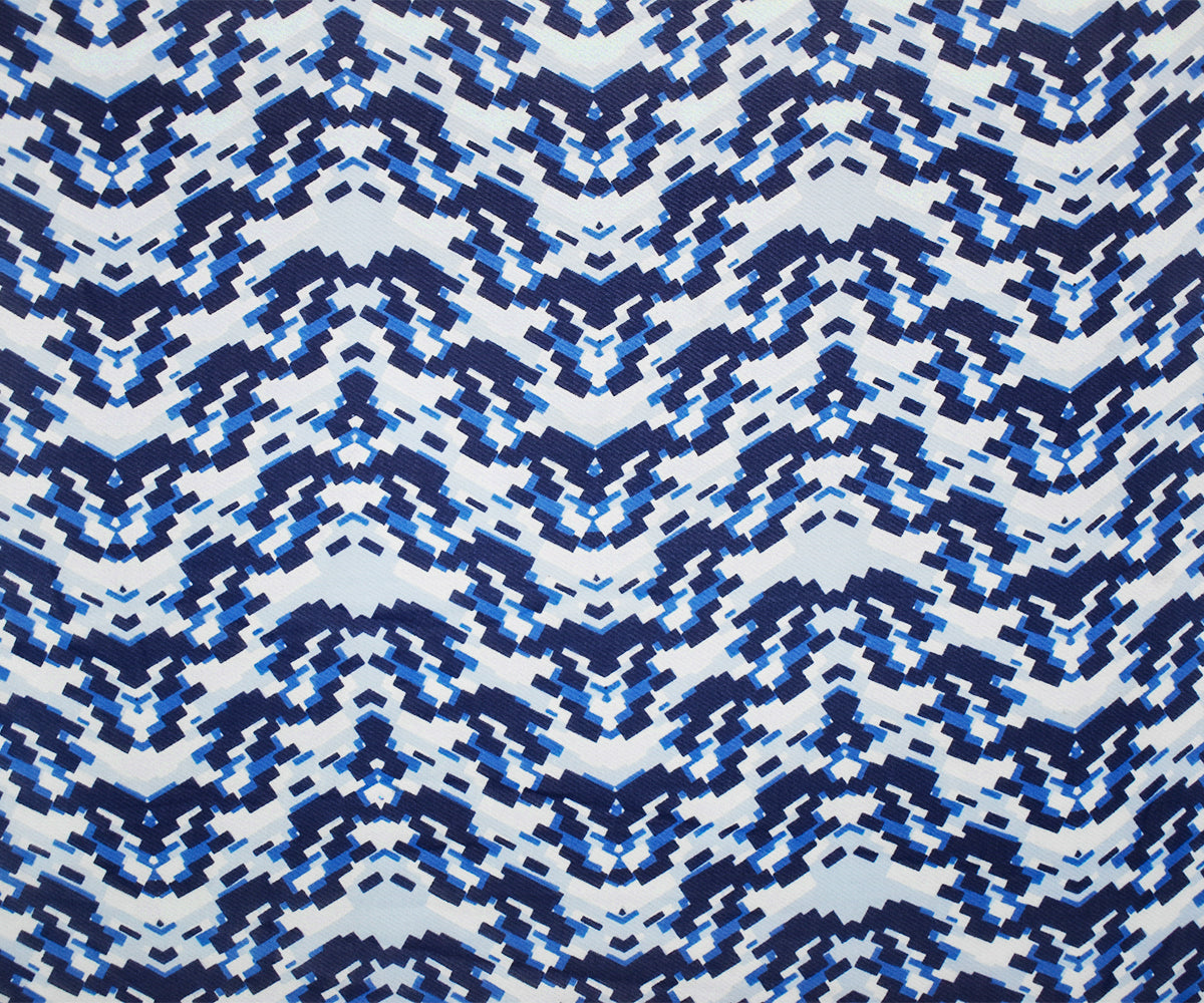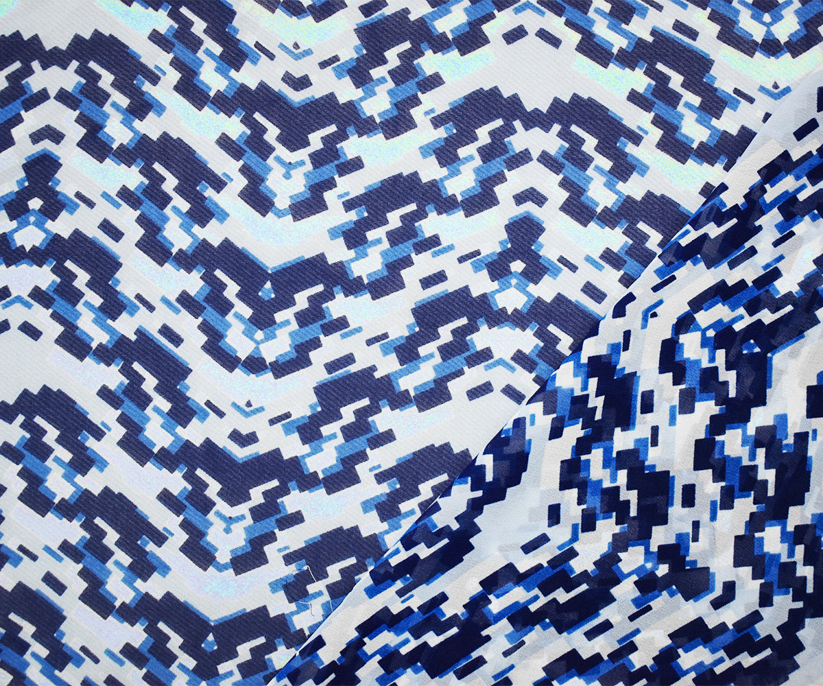 Blue-White Poly Pixel Chevron Printed Chiffon Woven Fabric