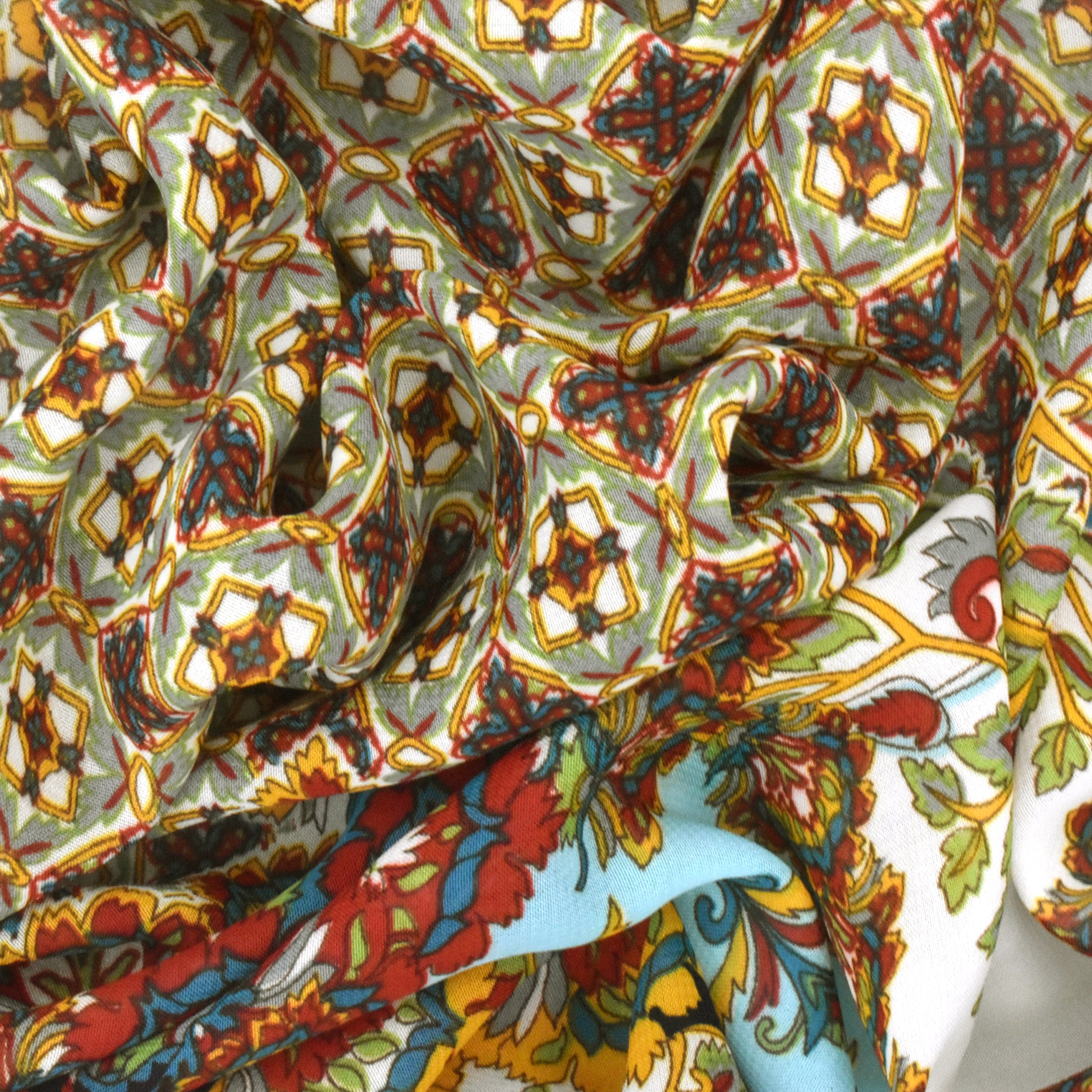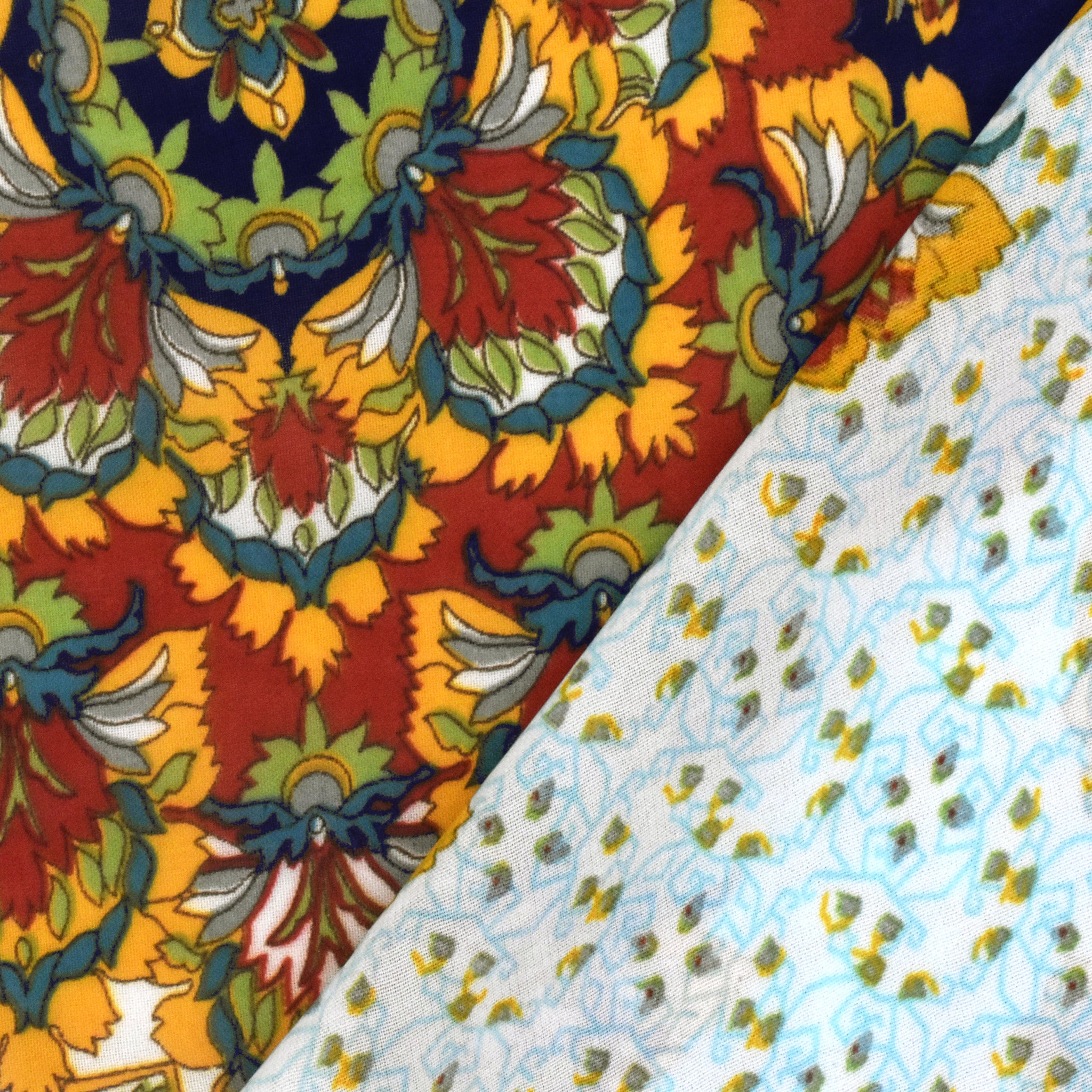 Clean Teal-Blue-Multi Moroccan Floral Border Poly Chiffon Woven Fabric