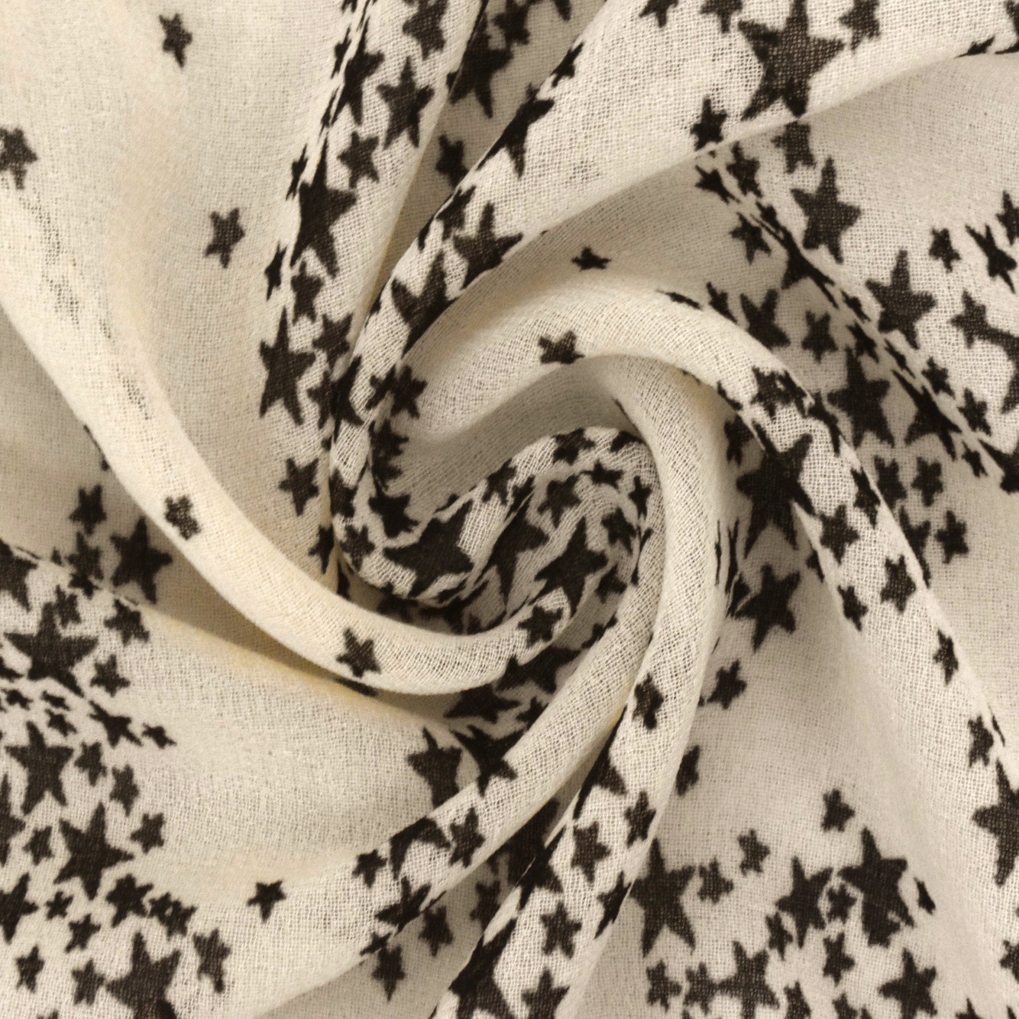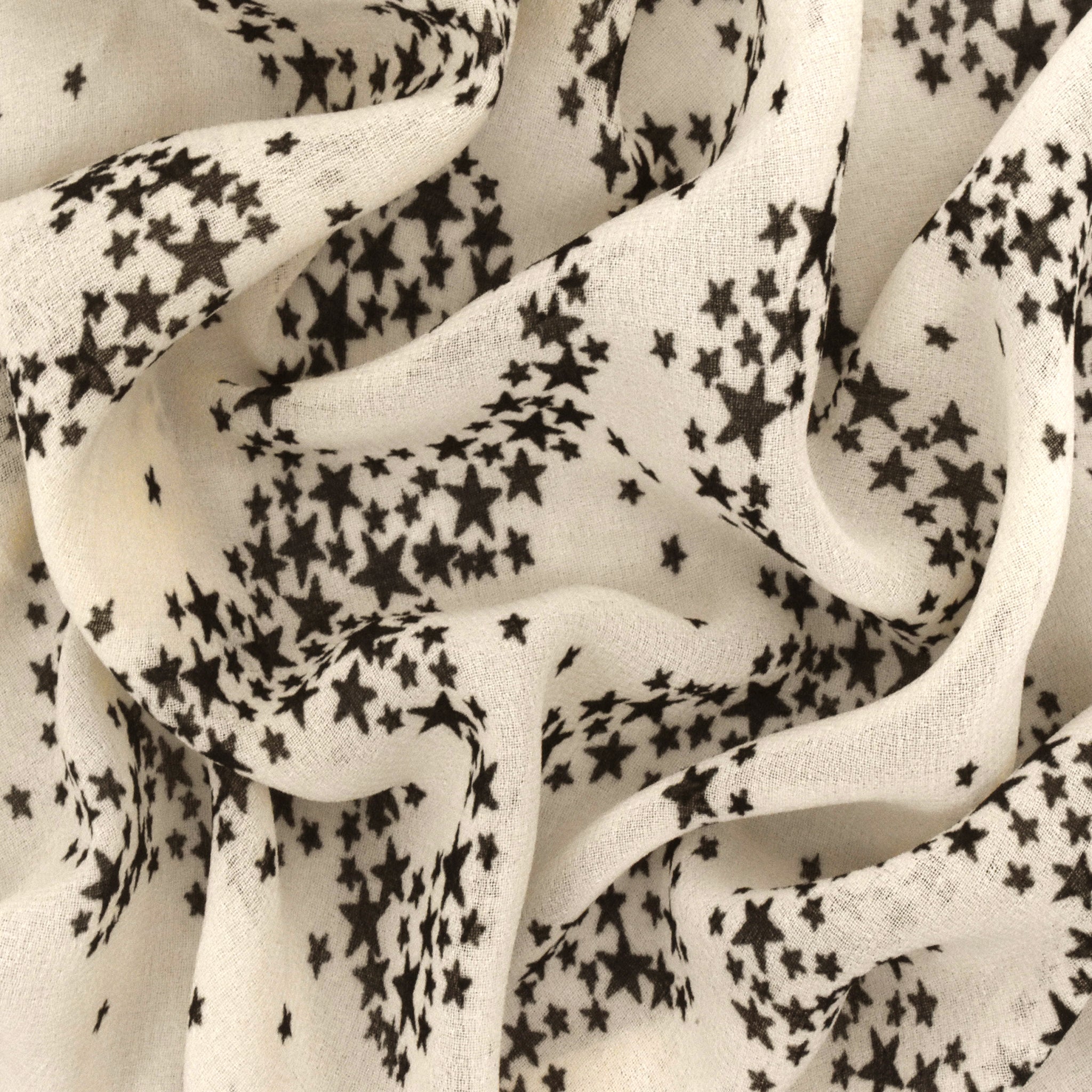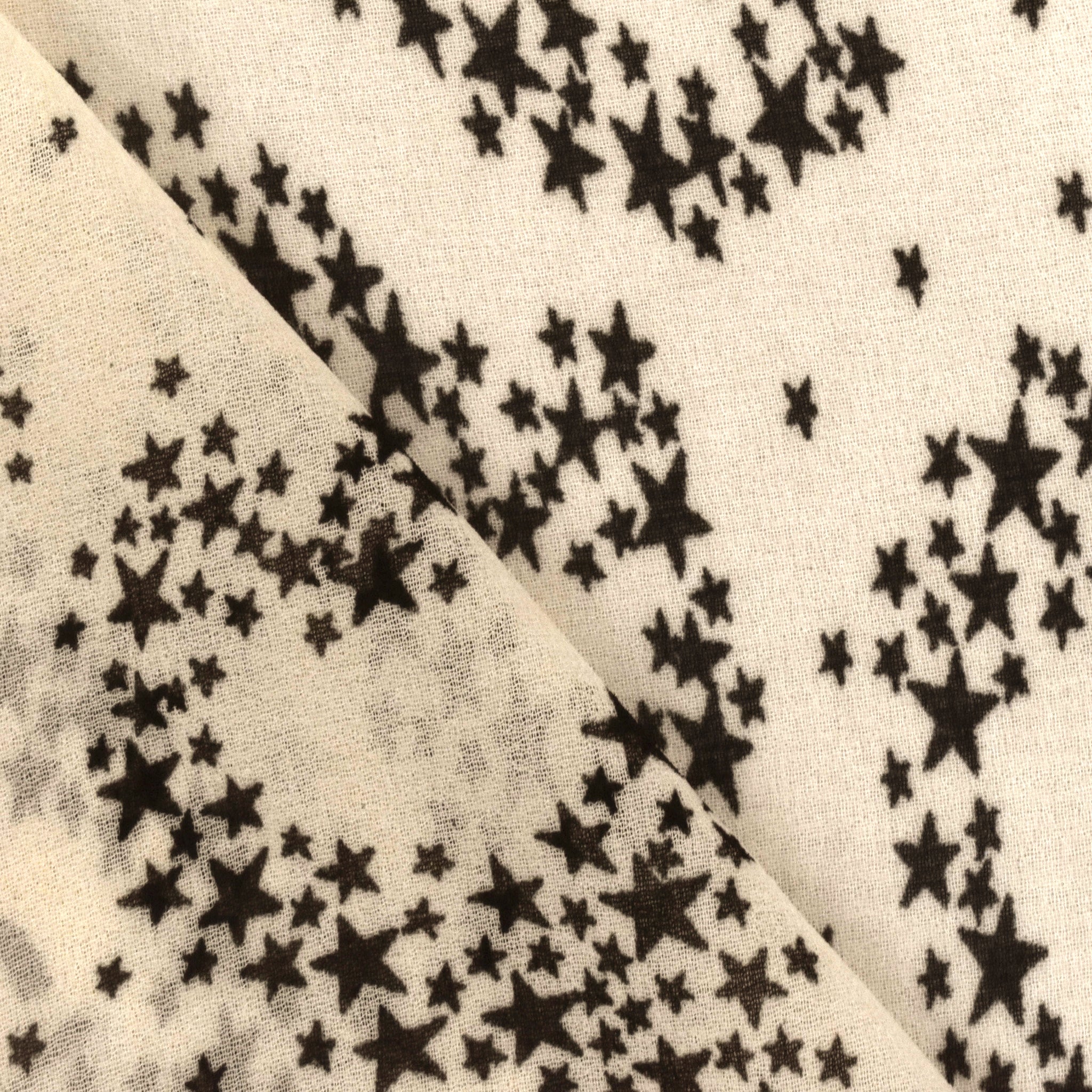 Cream Beige-Black Star Galaxy Printed Chiffon Woven Fabric
