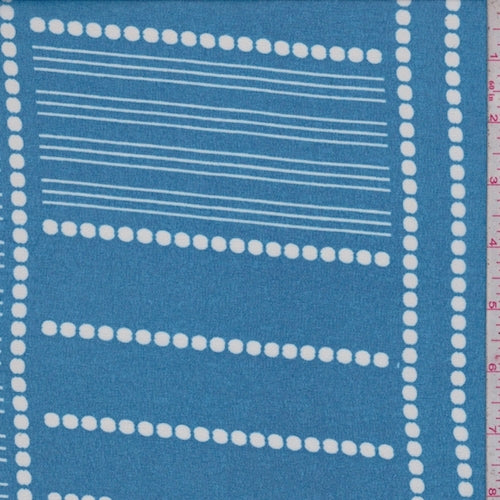 Dark Aqua/White Dot/Stripe Block Pebble Chiffon Fabric