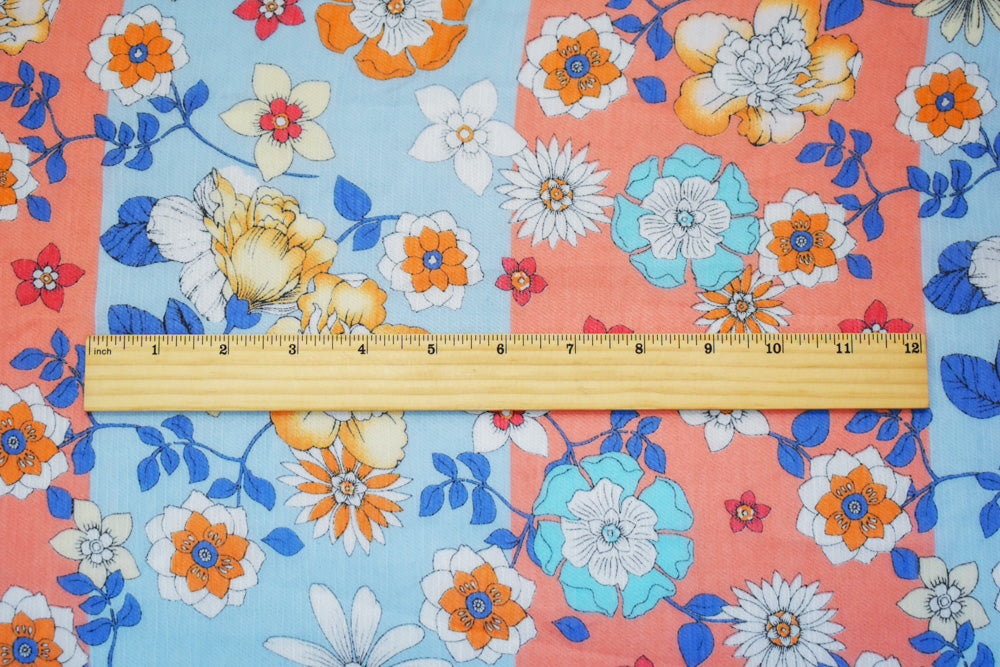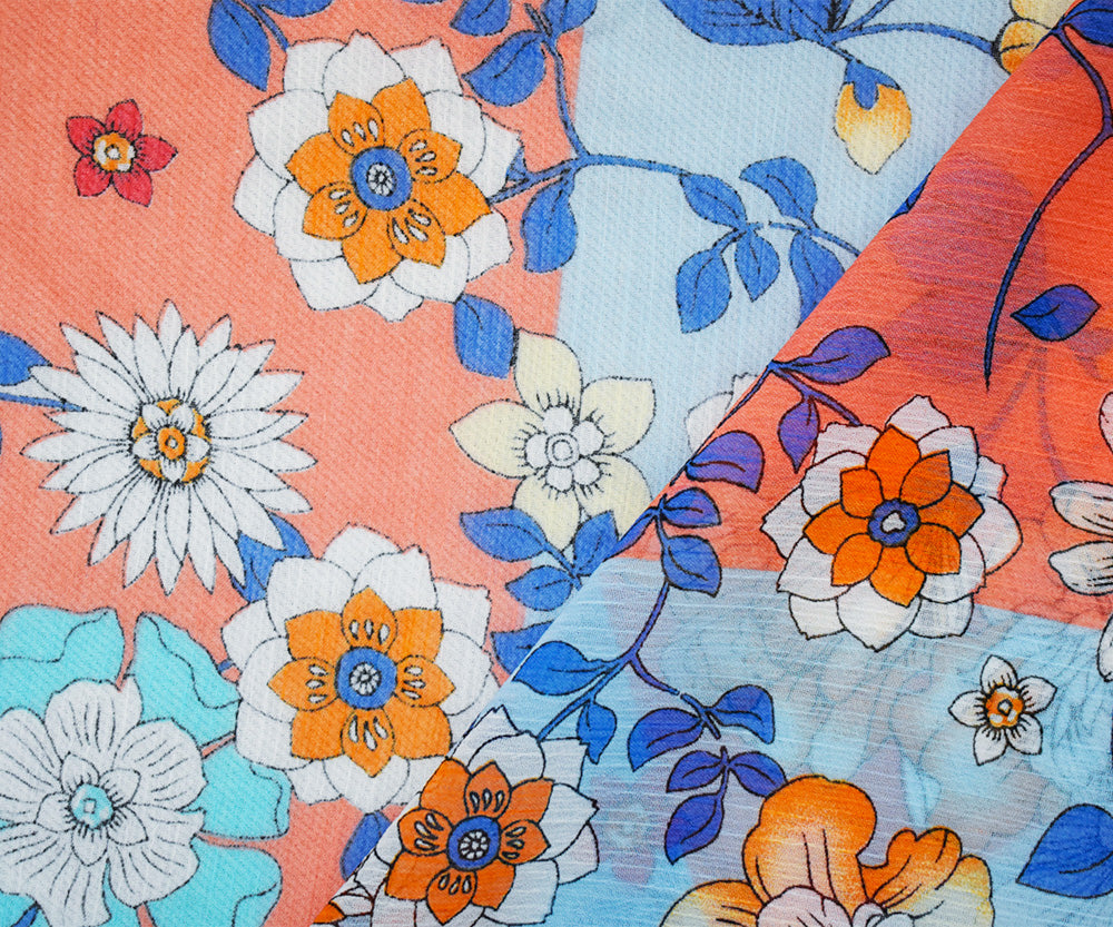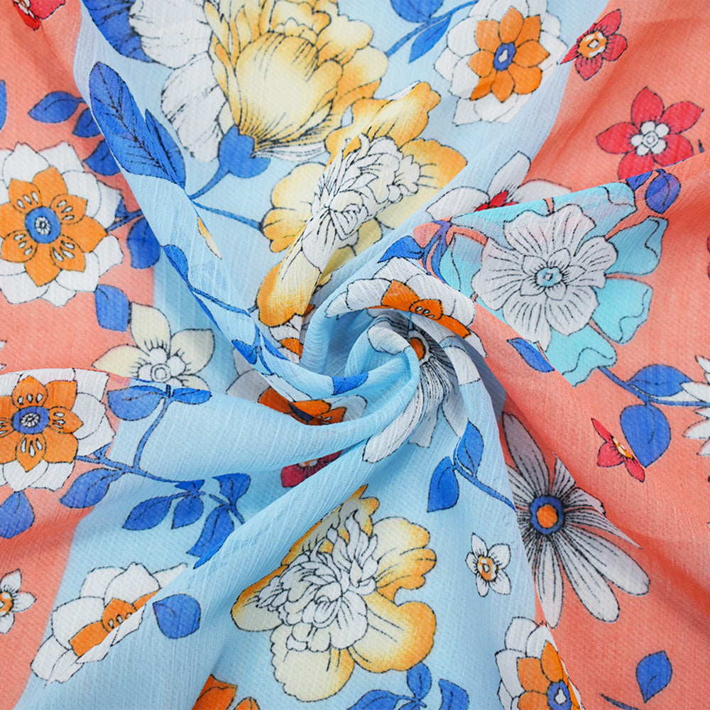 Light Blue-Orange-Multi Poly Floral Printed Yoryu Chiffon Woven Fabric