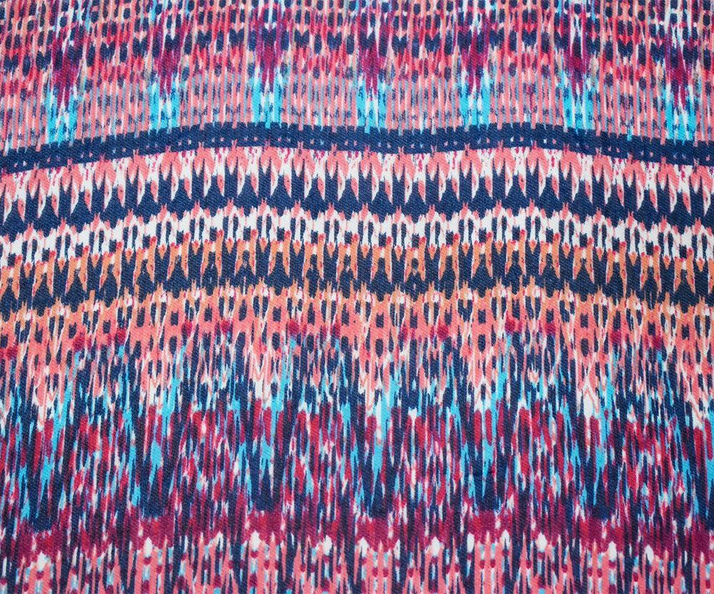 Navy-Coral-Multi Poly Aztec Ikat Pattern Printed Chiffon Woven Fabric