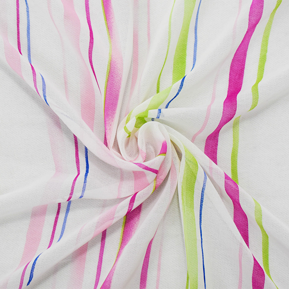 Pink-White-Multi Poly Stripe Printed Chiffon Woven Fabric