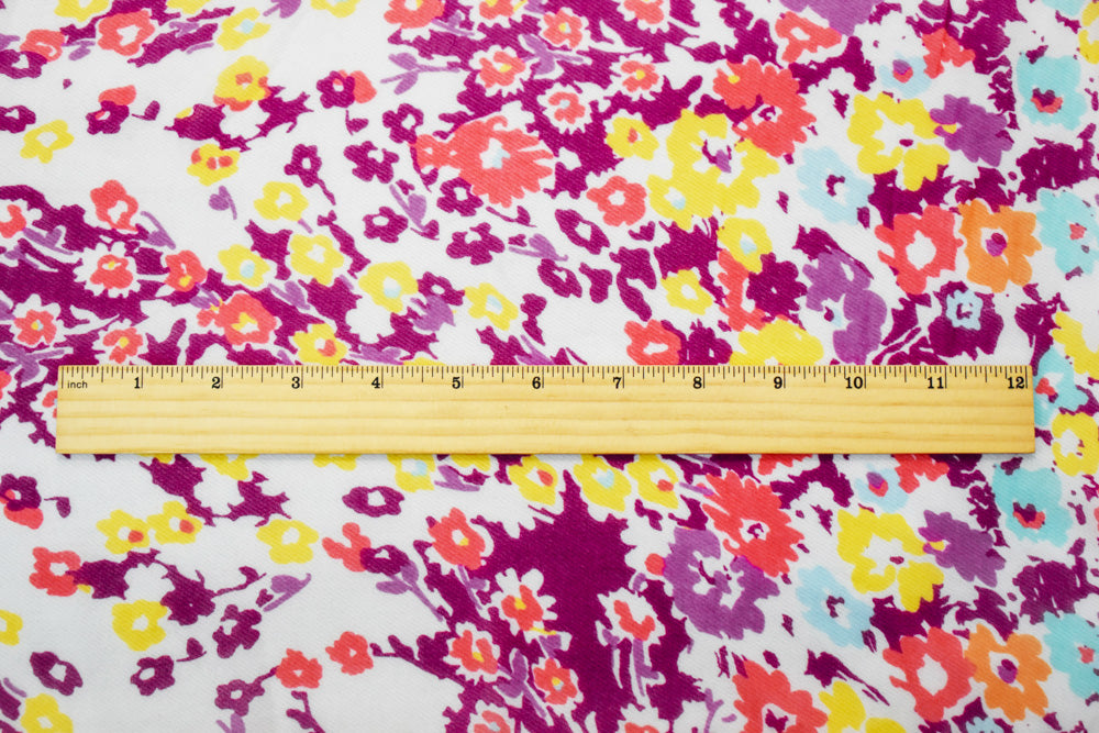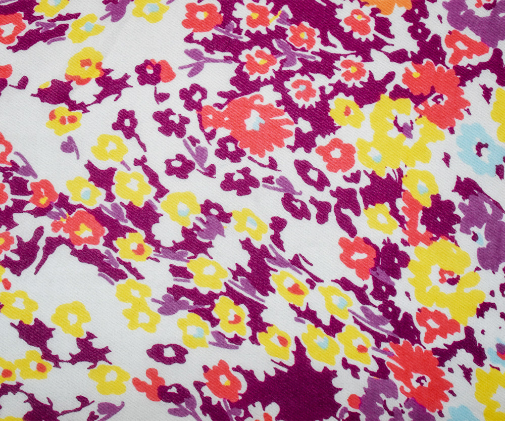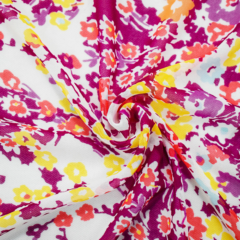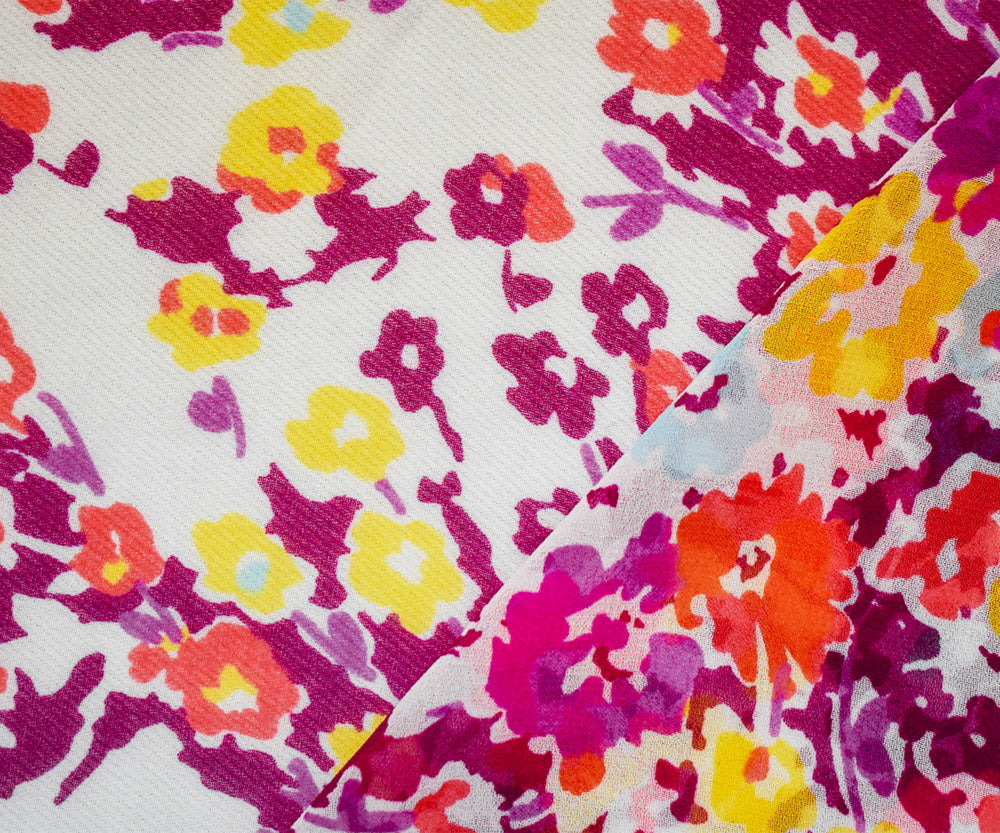Red-Orange-Multi Poly Floral Printed Chiffon Woven Fabric