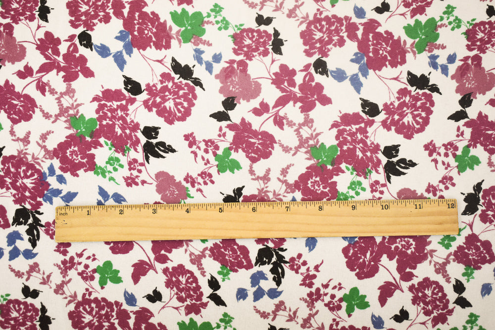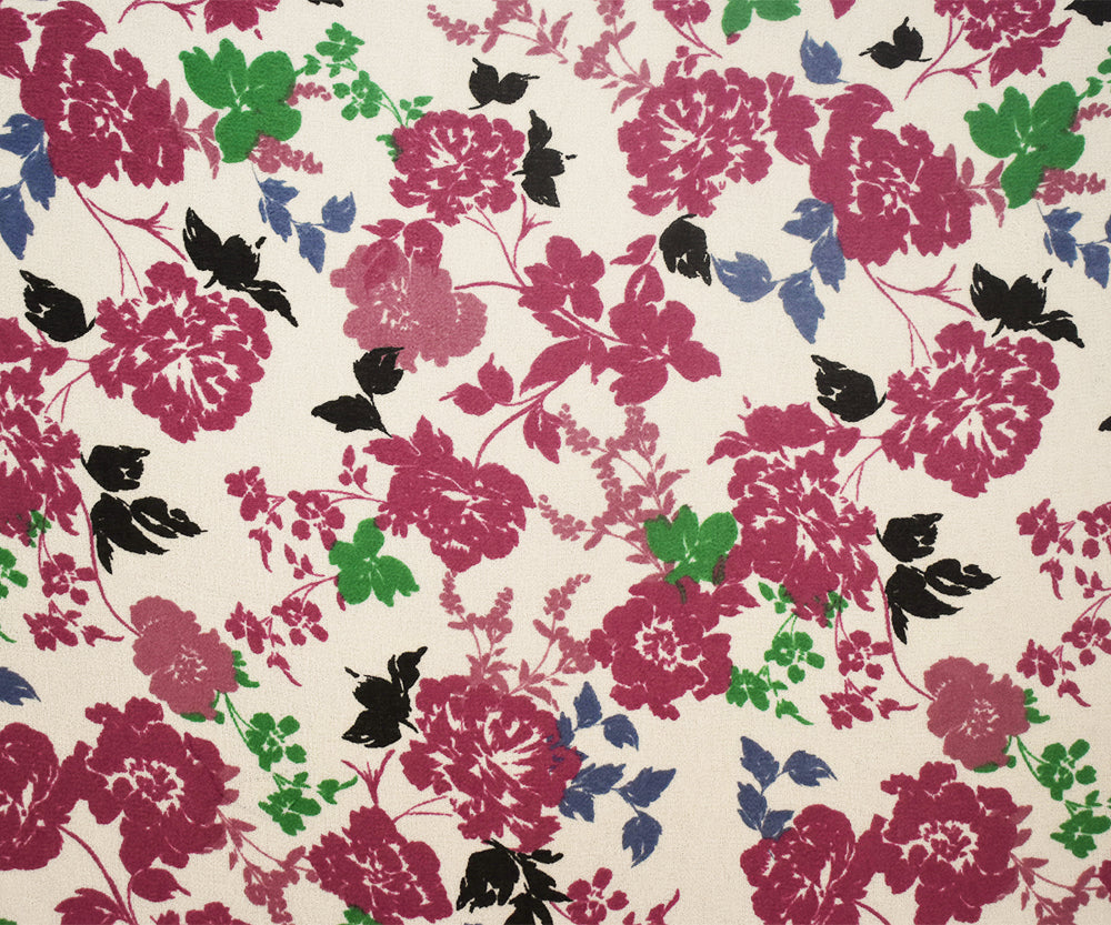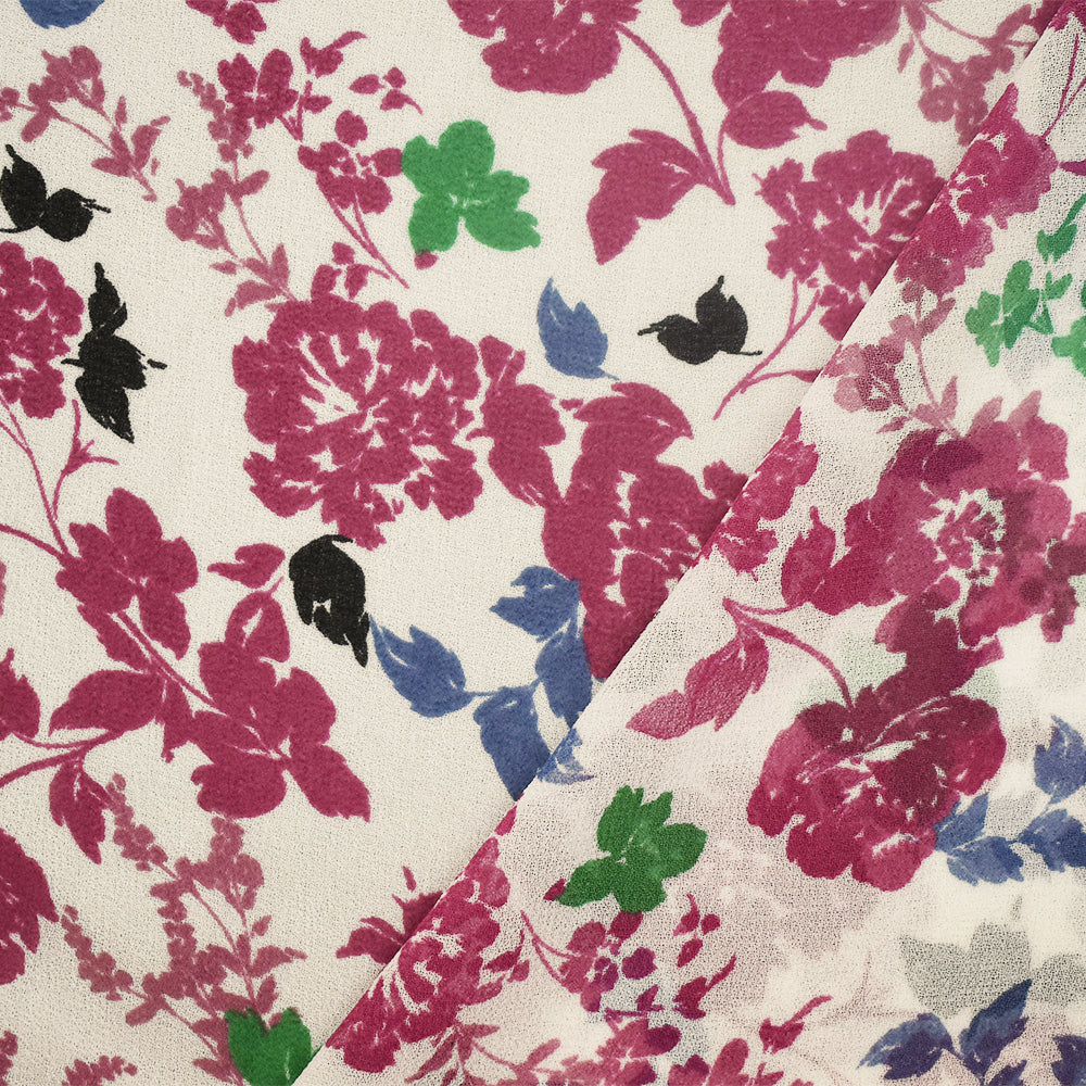 White-Magenta Pink-Multi Floral Printed Poly Chiffon Woven Fabric