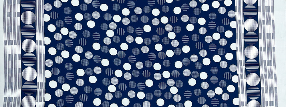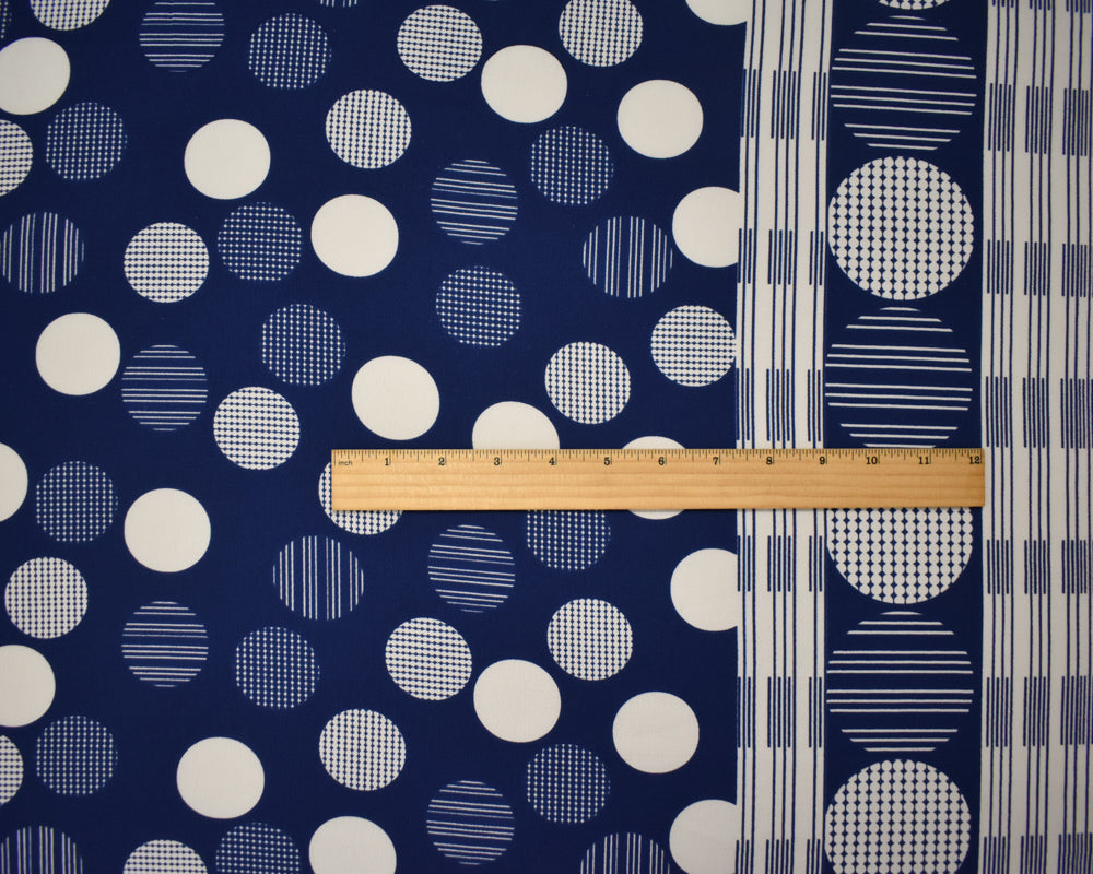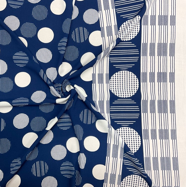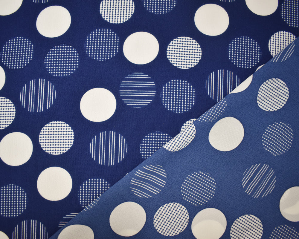 Blue-White Poly Circle Abstract Printed Pebble Crepe Woven Fabric