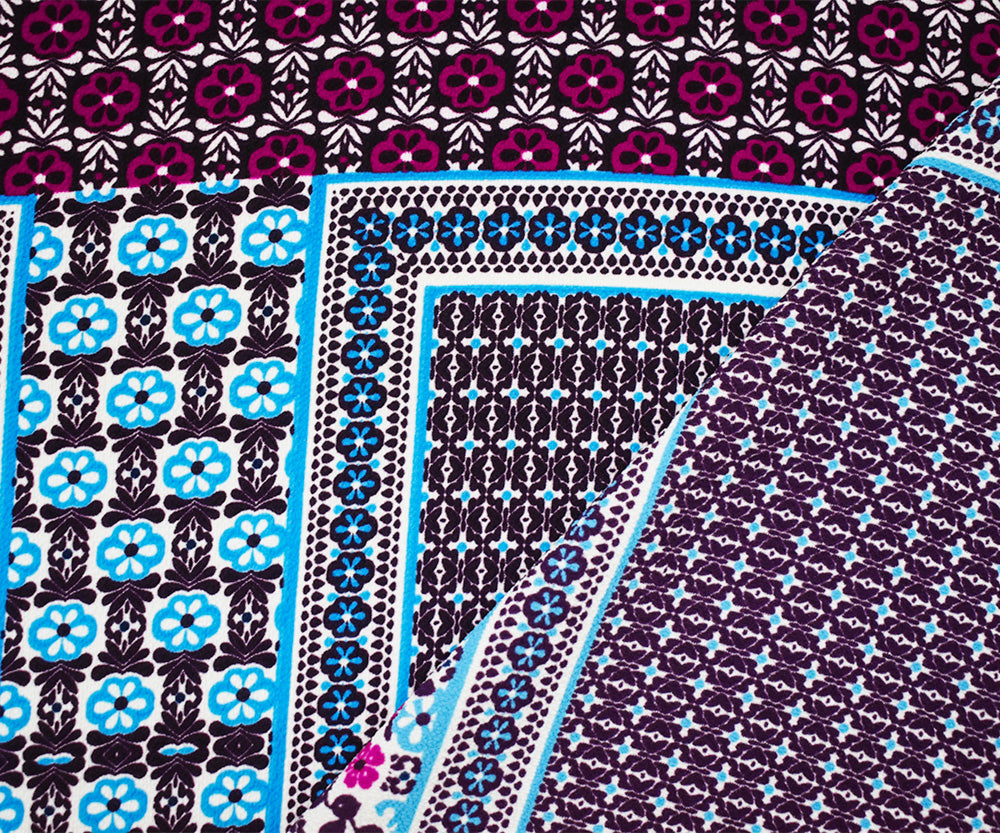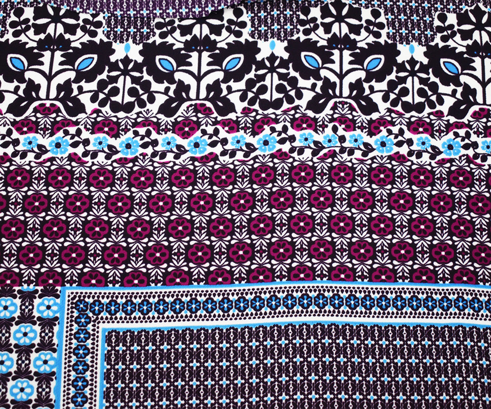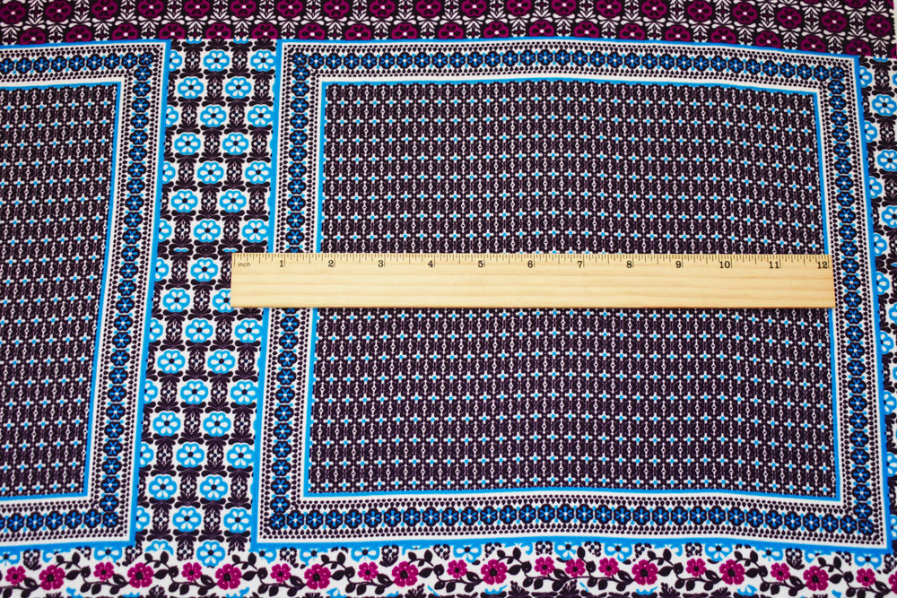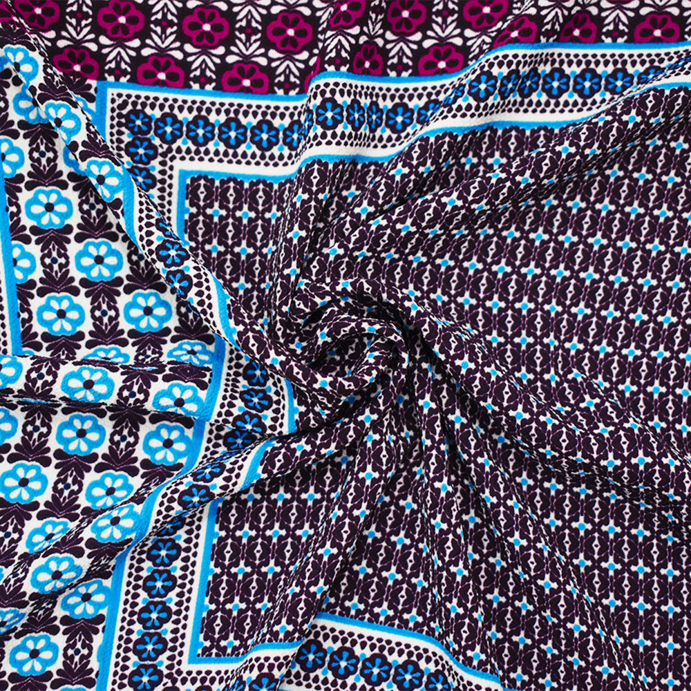 Deep Purple-Multi Poly Border Printed Pebble Crepe Woven Fabric