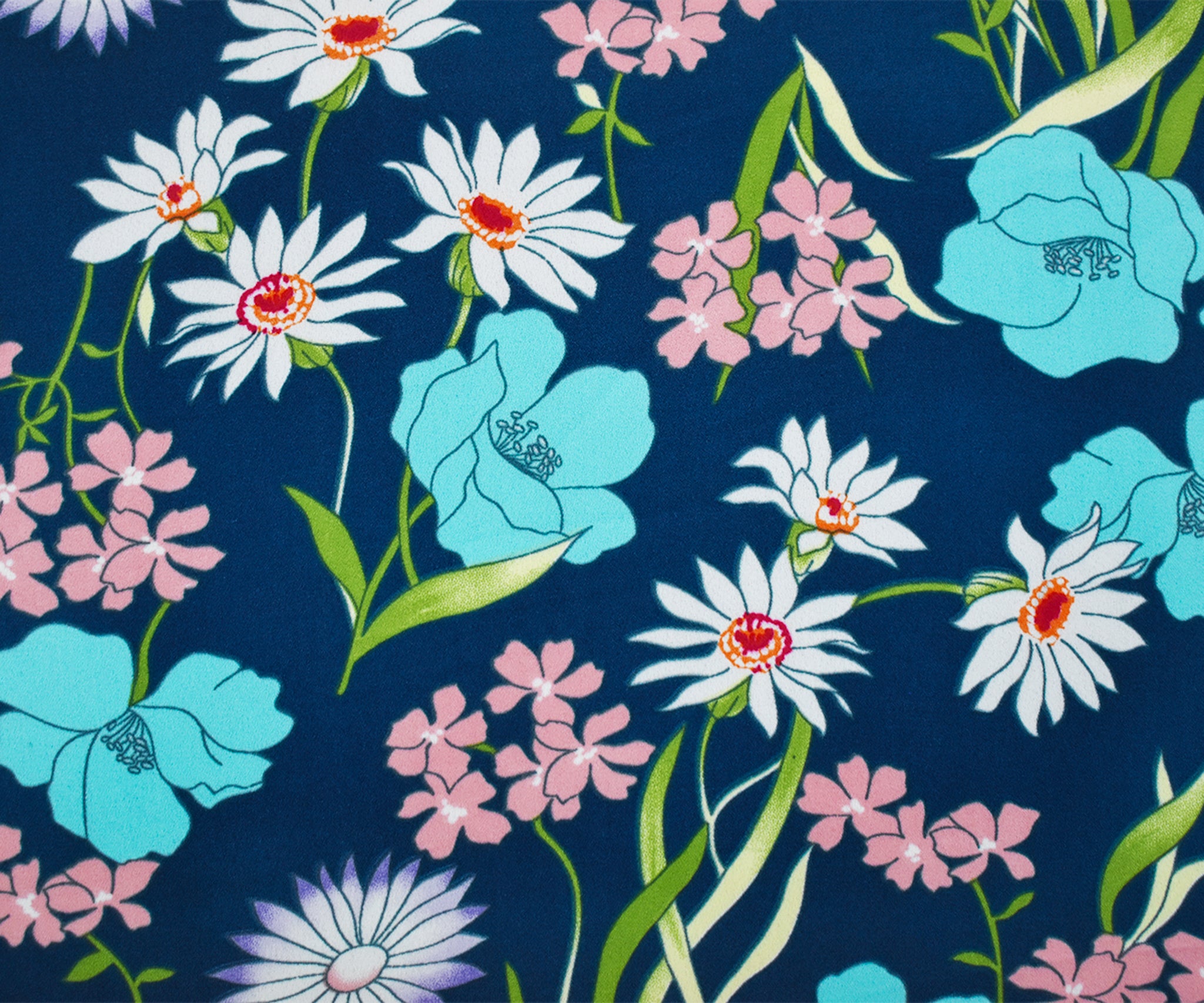 Deep Teal-Multi Poly Floral Printed Crepe Momie Georgette Woven Fabric