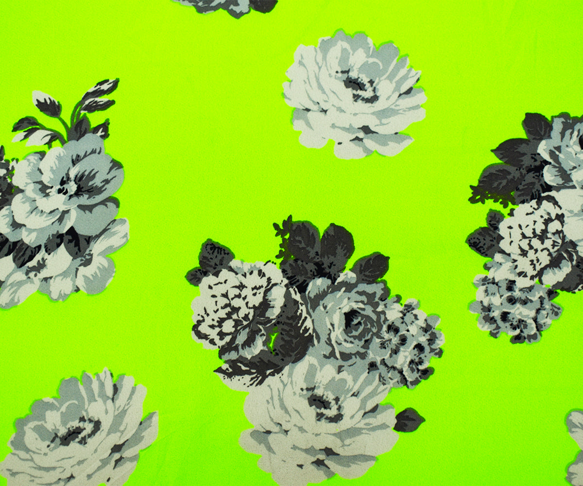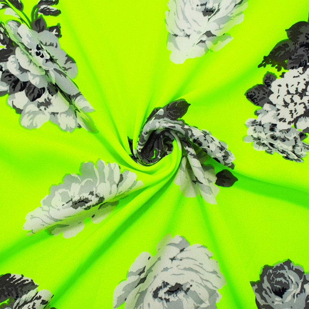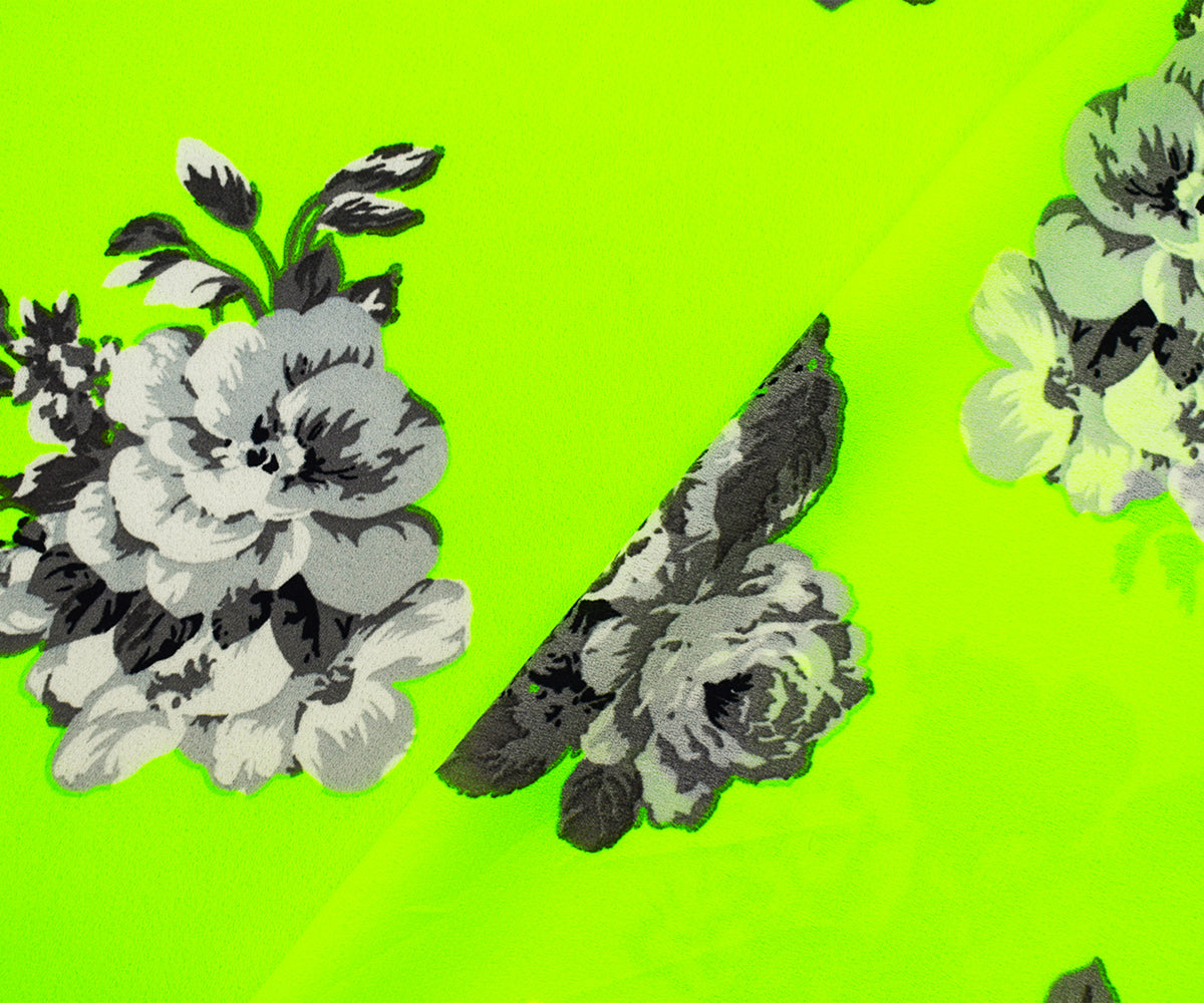 Neon Yellow-Multi Poly Floral Printed Crepe Dobby Georgette Woven Fabric