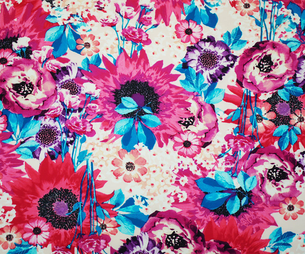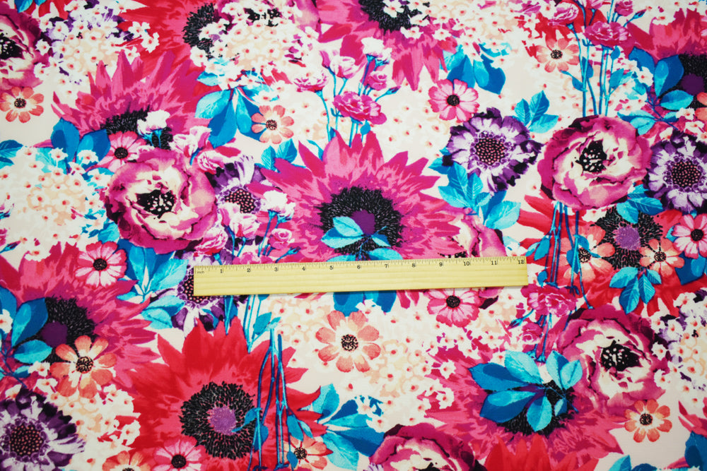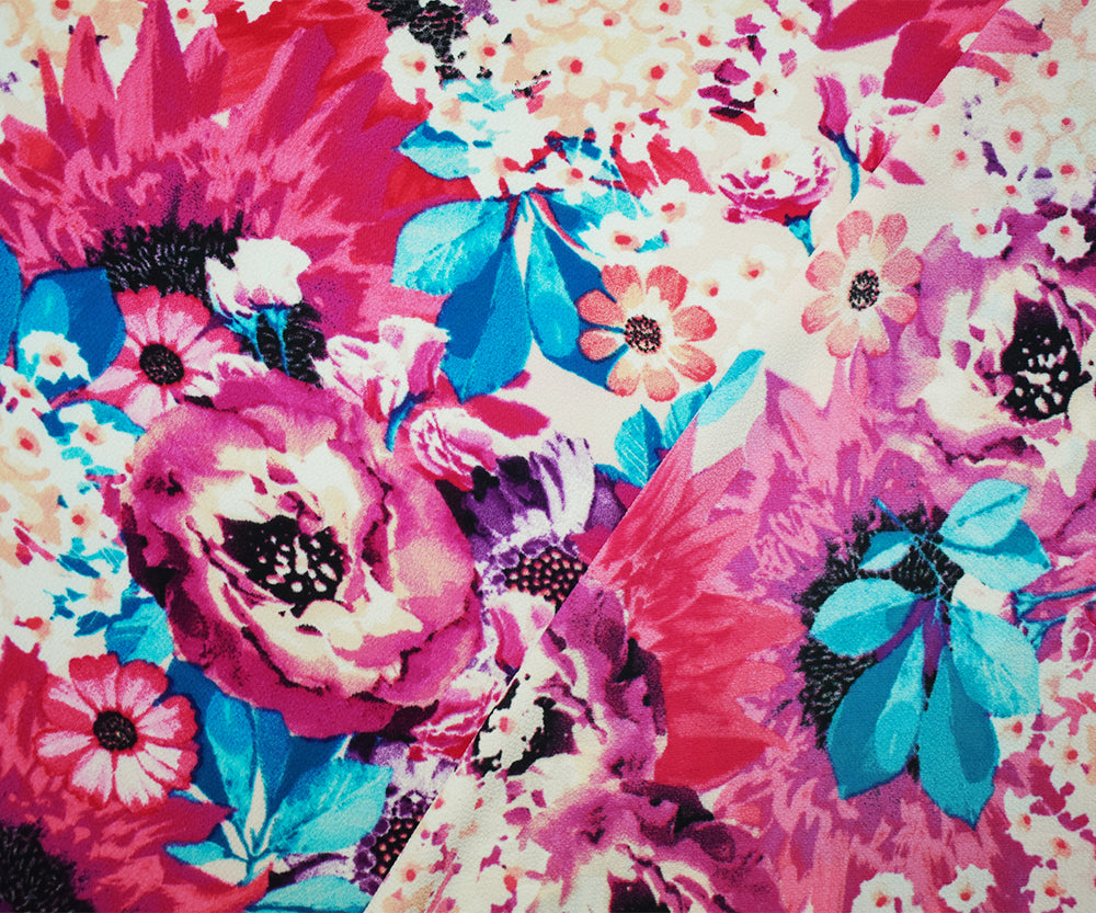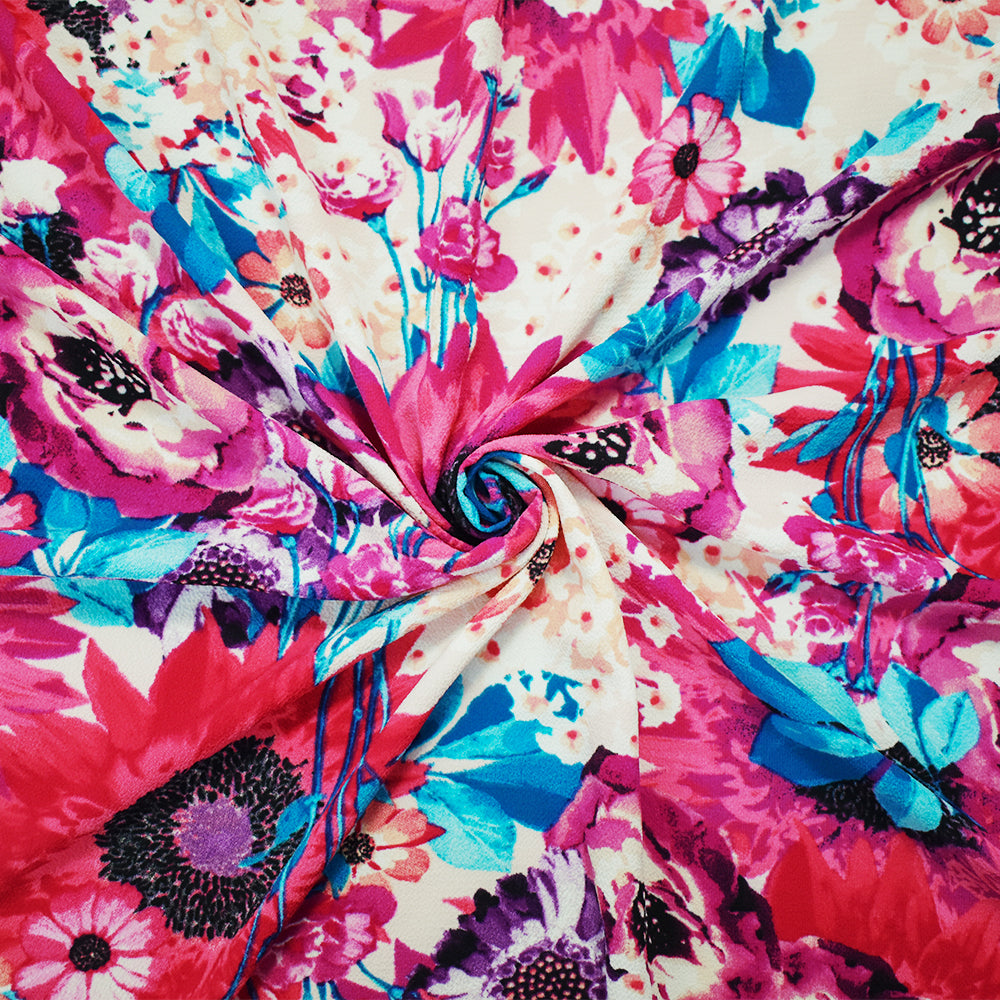Pink-Purple-Multi Poly Floral Printed Pebble Crepe Woven Fabric