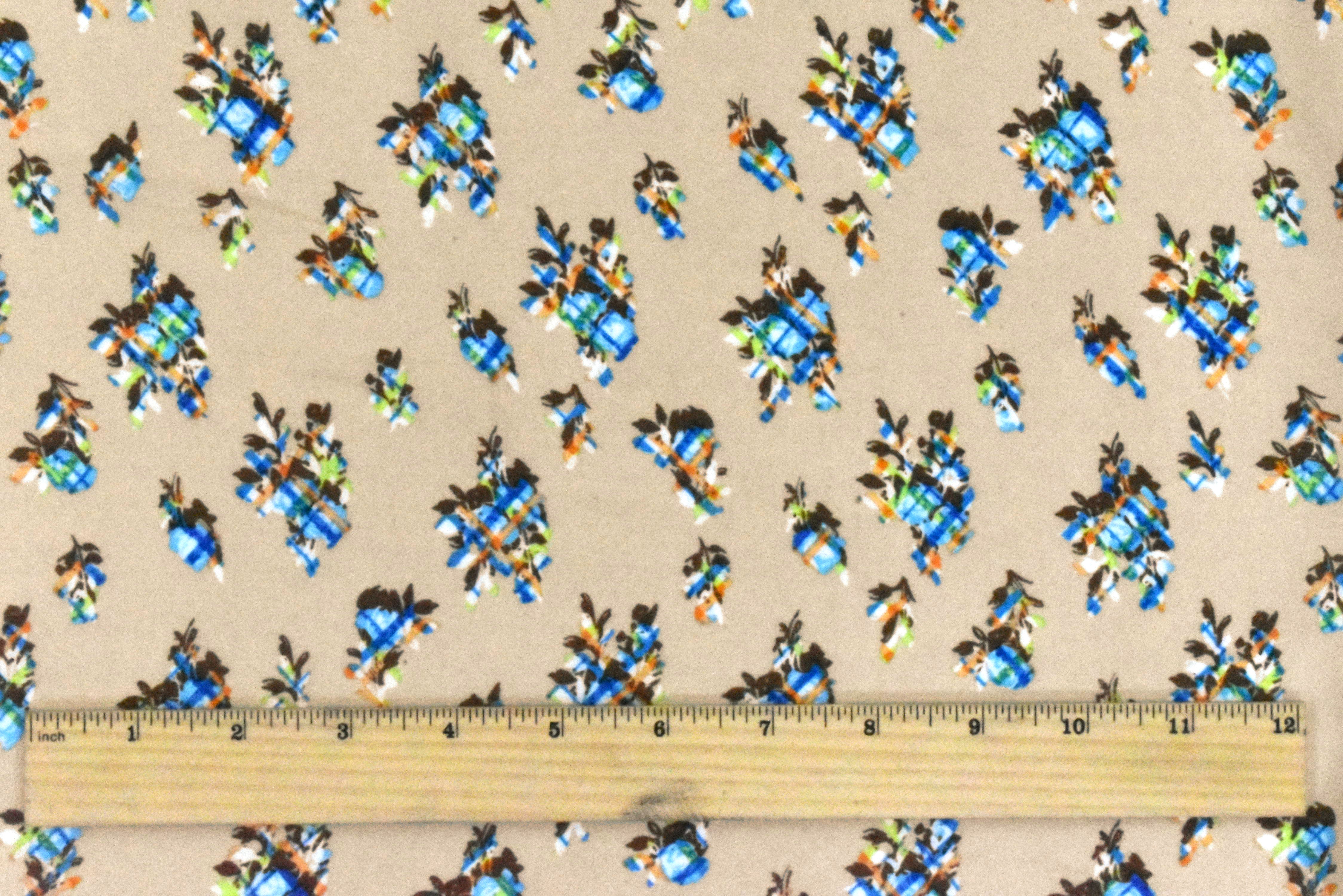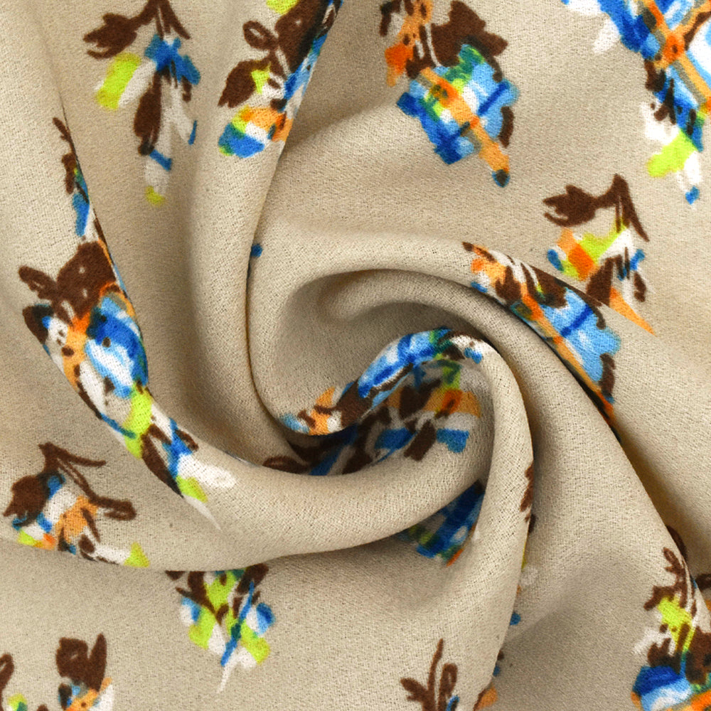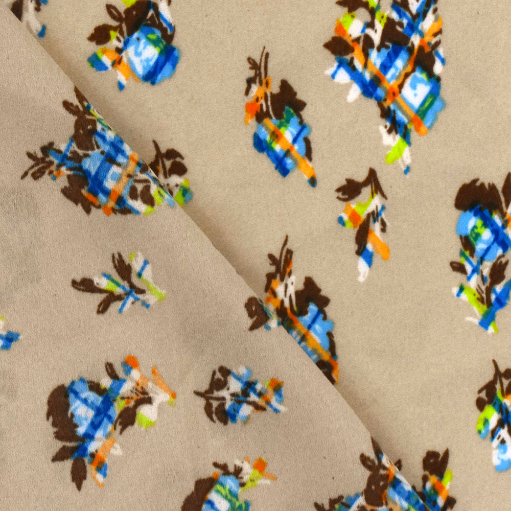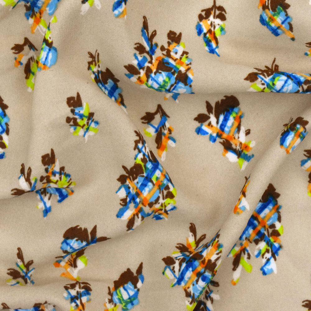 Beige-Aqua-Multi Abstract Floral Plaid Printed Momie Georgette Fabric