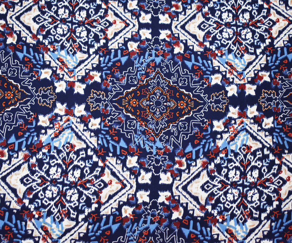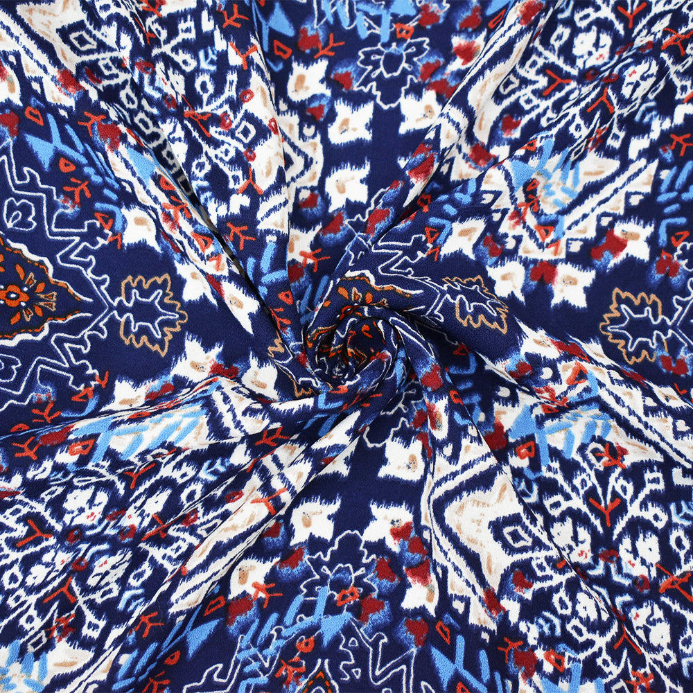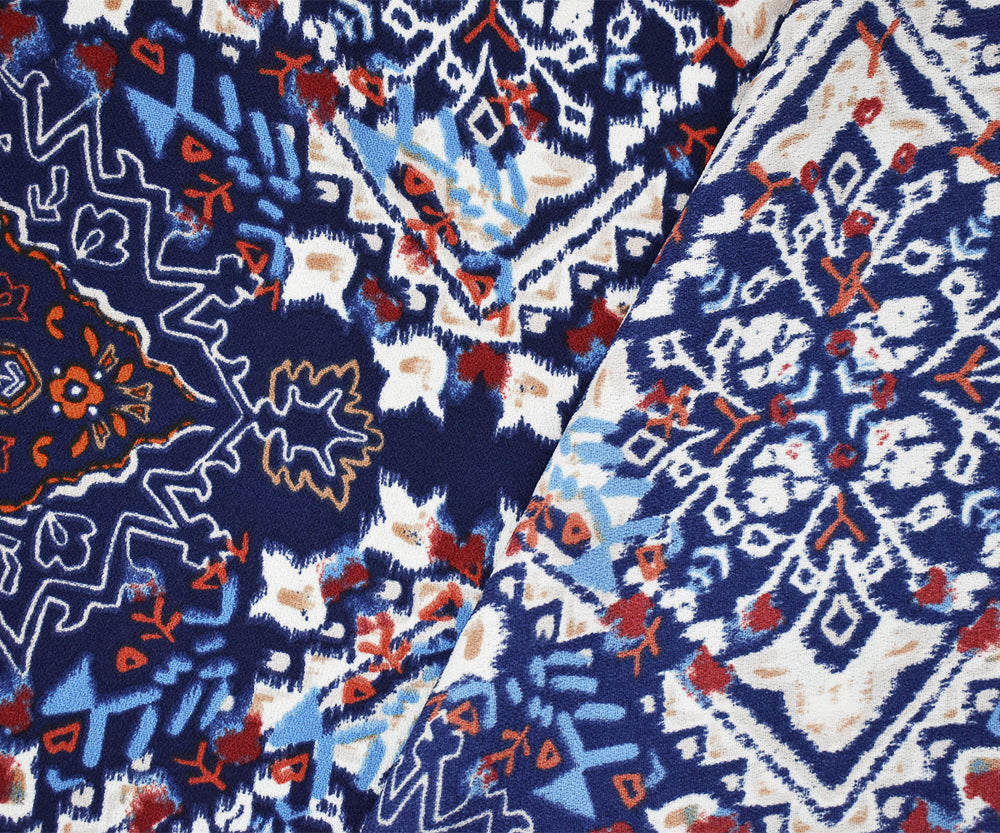 Blue-Brown-Multi Moroccan Diamond Print Poly Crepe Momie Georgette Fabric