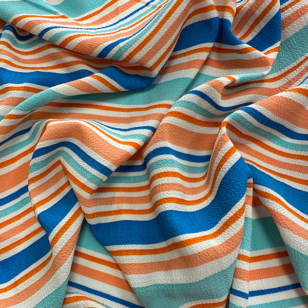 Blue Multi Strip Crepe Georgette Fabric