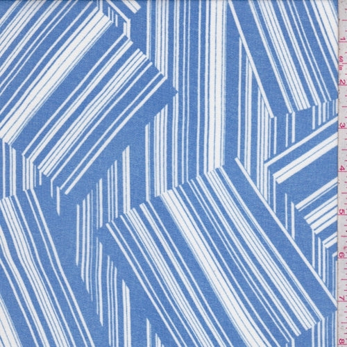 Blue Water/White Linear Block Crepe Georgette Fabric