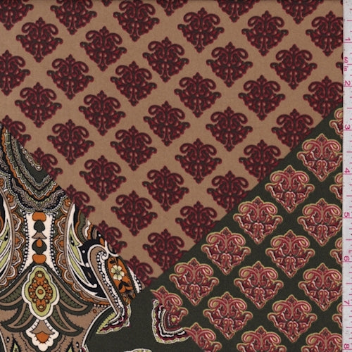 Caramel/Moss Stylized Paisley Crepe Georgette Fabric