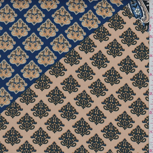 Dark Beige/Blue Stylized Paisley Crepe Georgette Fabric