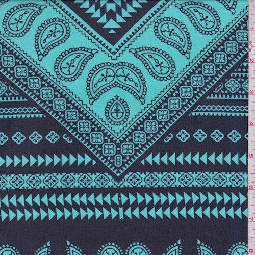 Dark Turquoise/Navy Paisley Chevron Georgette Fabric