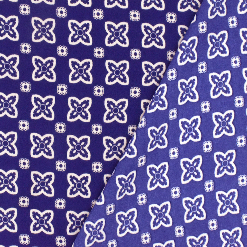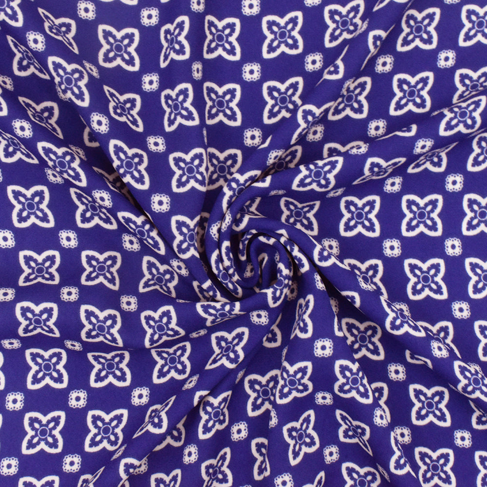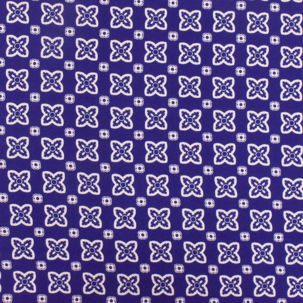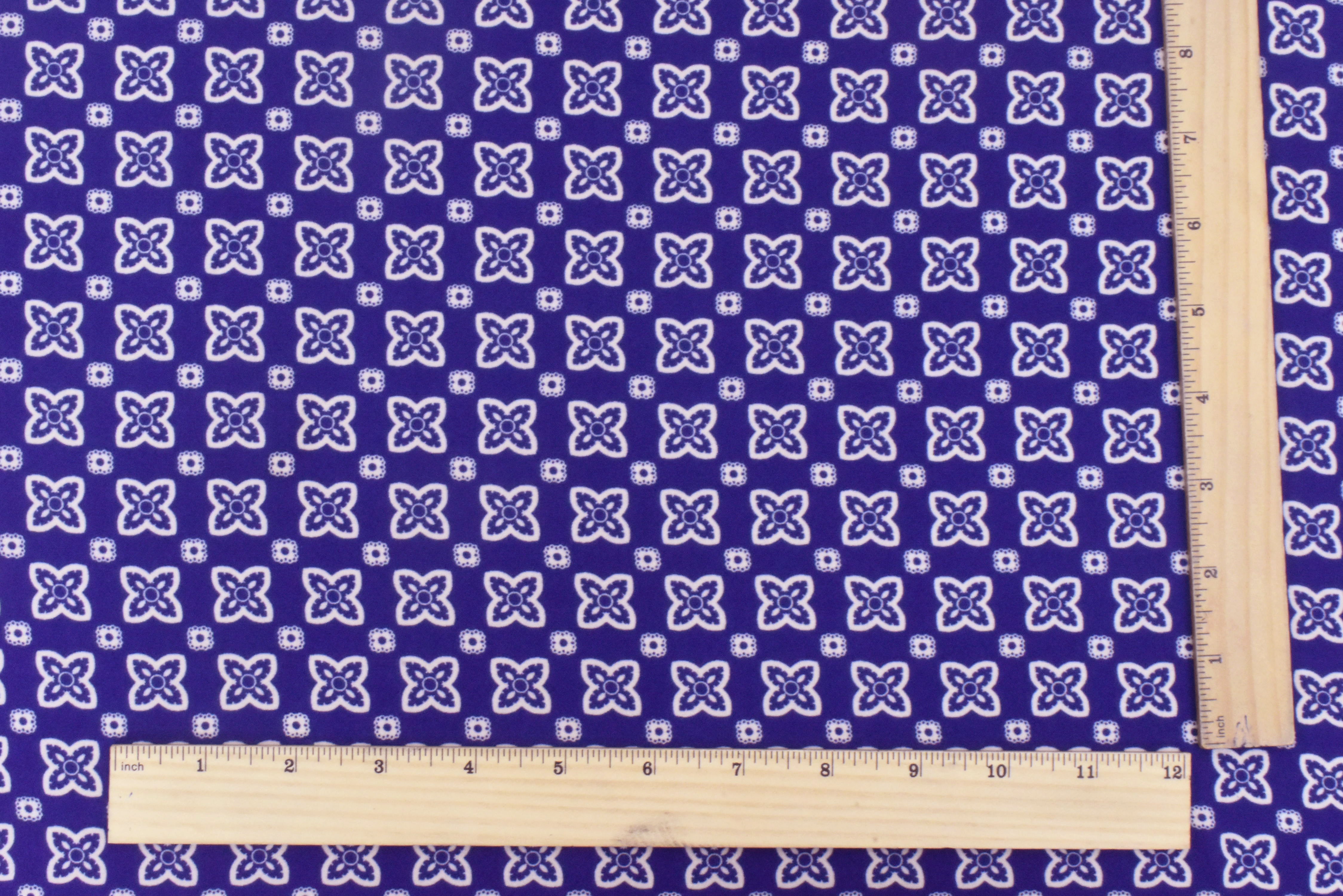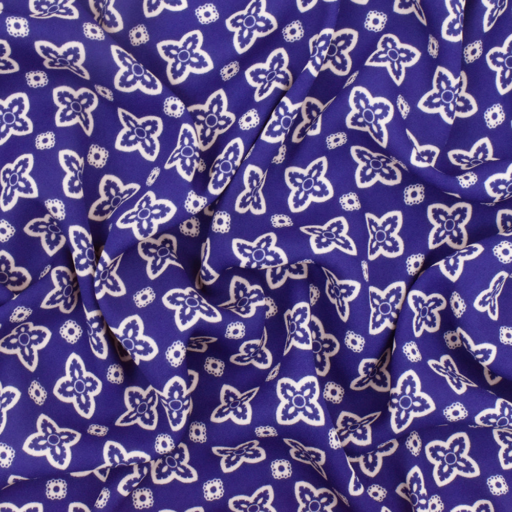 Holiday Blue-Light Beige Quatrefoil Floral Print Poly Georgette Woven Fabric