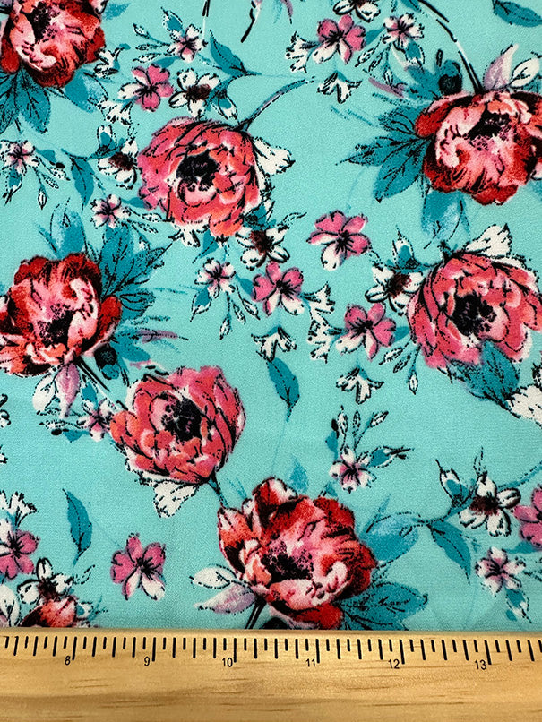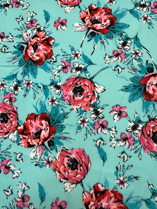 Mint Green Multi Floral Print Poly Georgette Fabric