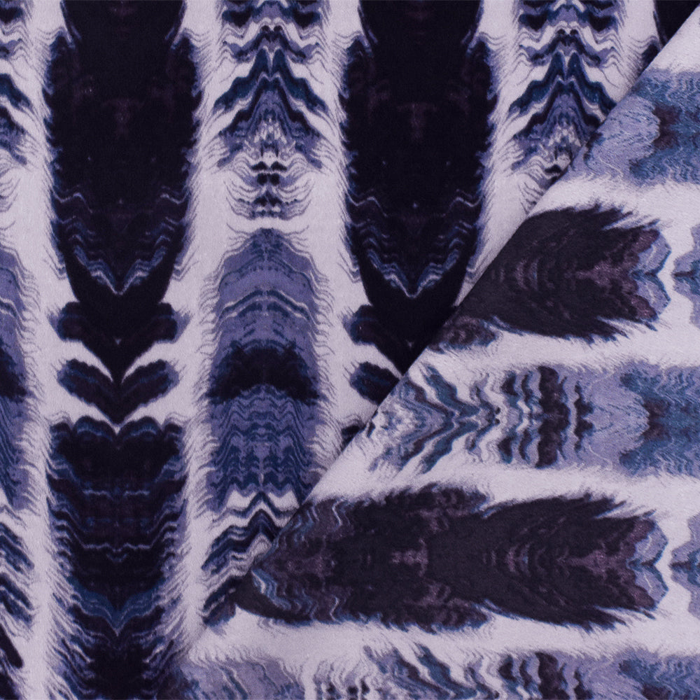 Moon Purple-Black-Multi Abstract Feather Print Poly Georgette Woven Fabric