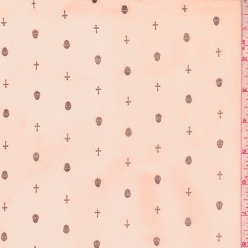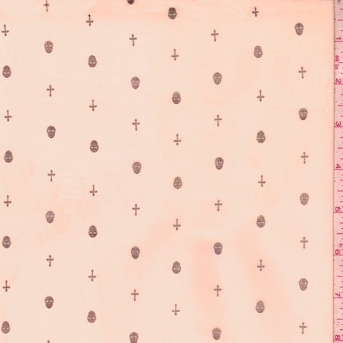 Pale Peach/Gold Mini Skull/Cross Georgette Fabric
