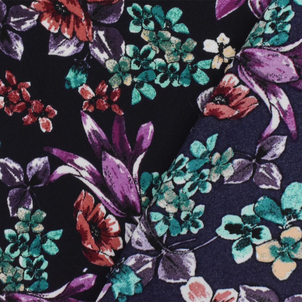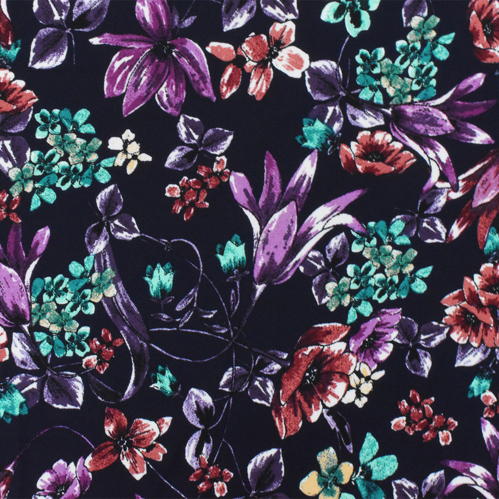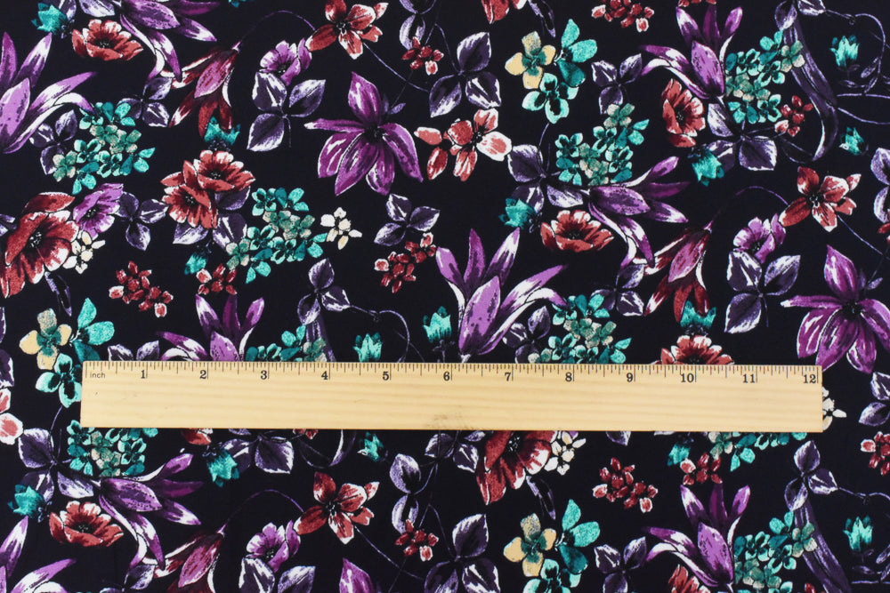 Purple-Red-Multi Floral Printed Poly Georgette Woven Fabric