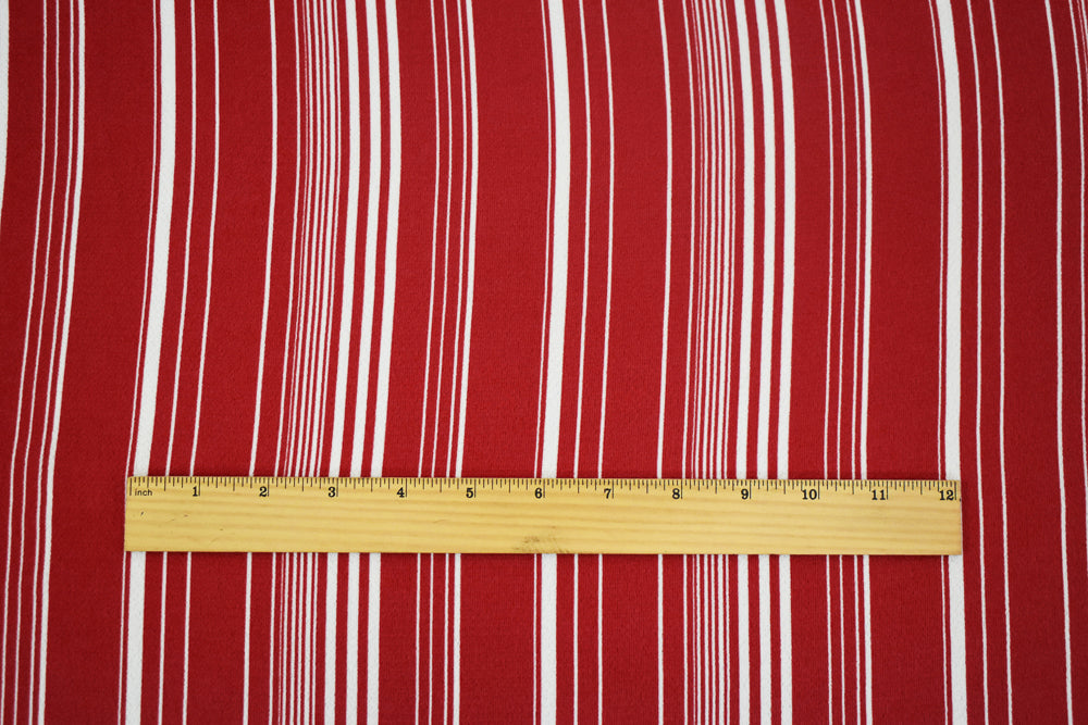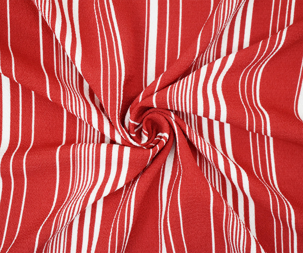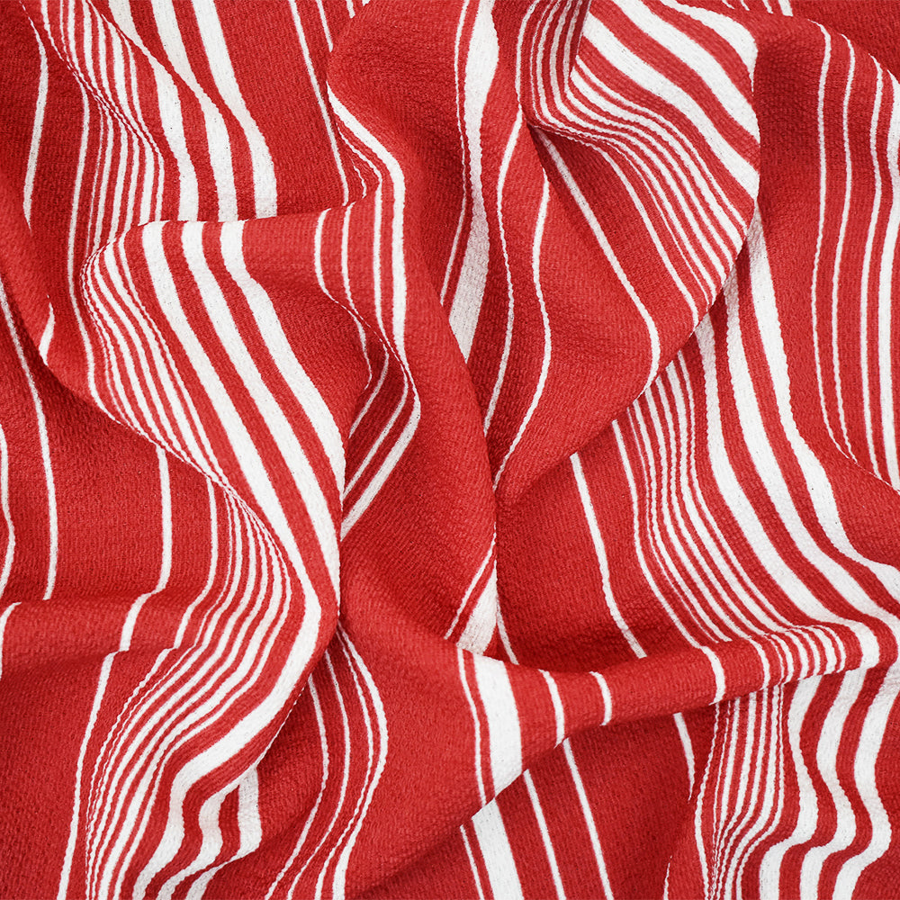 Red-White Stripe Printed Poly Crepe Georgette Woven Fabric