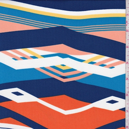 Royal/Orange/Aqua Chevron Stripe Crepe Georgette Fabric