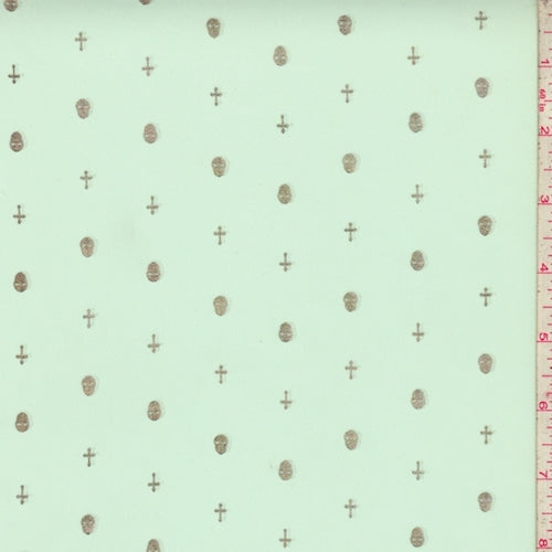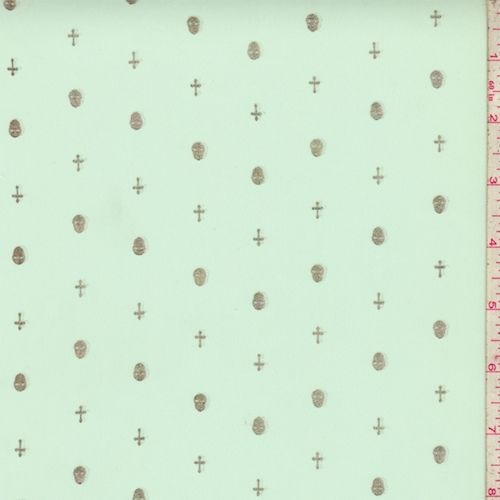 Sea Glass/Gold Mini Skull/Cross Georgette Fabric