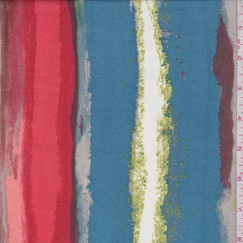 Teal/Red/Lime Striated Stripe Georgette Fabric