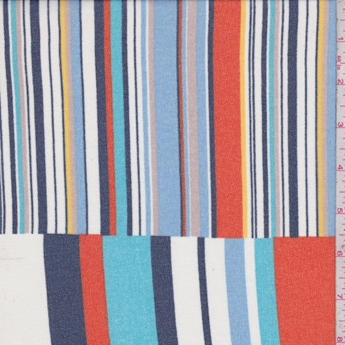 Turquoise/White/Orange Stripe Block Crepe Georgette Fabric