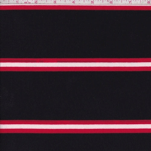 Black/Cherry Stripe Brushed French Terry Knit Fabric