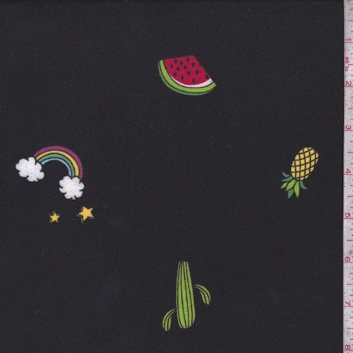 Black Fruit/Rainbow Double Brushed Jersey Knit Fabric