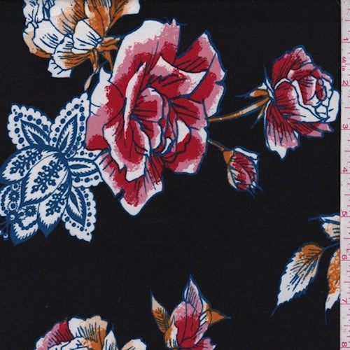 Black/Gold Stylized Floral Double Brushed Jersey Knit Fabric