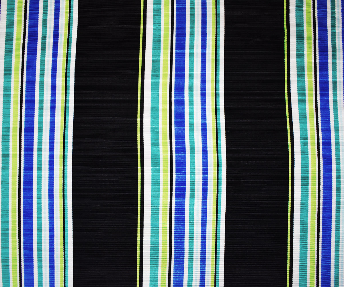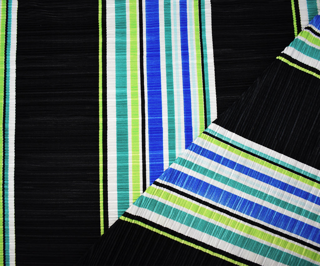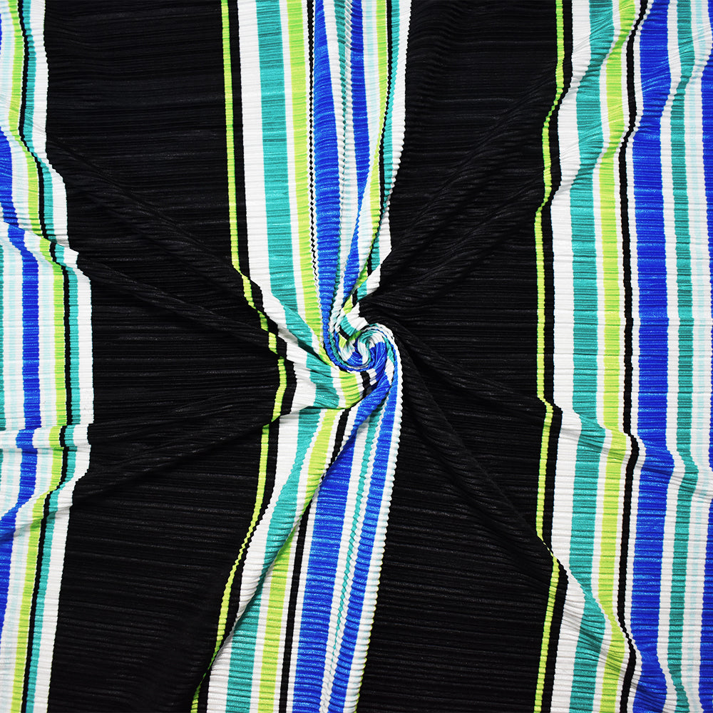 Black-Multi Poly Stretch Spandex Stripe Print Pleated Interlock Knit Fabric