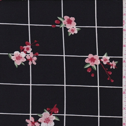 Black/Pink Floral Check Double Brushed Jersey Knit Fabric