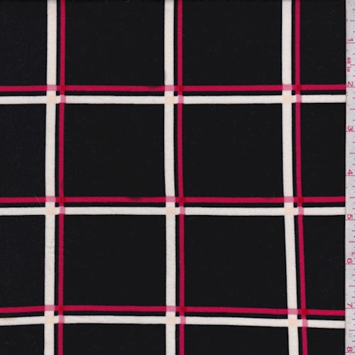 Black/Pink/White Check Double Brushed Jersey Knit Fabric