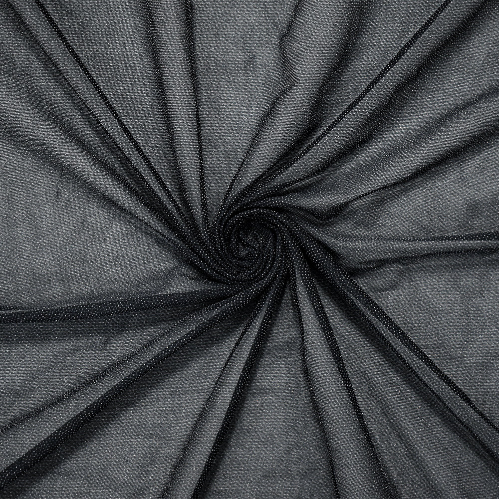 Black-Silver Poly Micro Dot Scallop Printed Mesh Knit Fabric