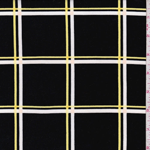 Black/Yellow/White Check Double Brushed Jersey Knit Fabric