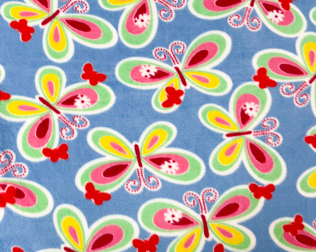 Blue-Green-Multi Polyester Butterfly Printed Polar Fleece Knit Fabric
